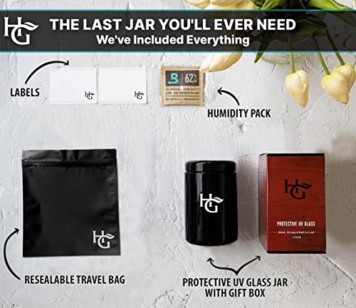 - A High Quality & Durable Glass Jar - At HG Our Goal is to Provide You with the Highest Quality, Premium Glass Jar. Have No Fear, This Jar is Built to Last! Whether You're Traveling with It on the Road or It Happens to Slip and Drop at Home, Each Jar is Made of Thick UV Glass to Withstand Cracks, Breaks and Shattering!