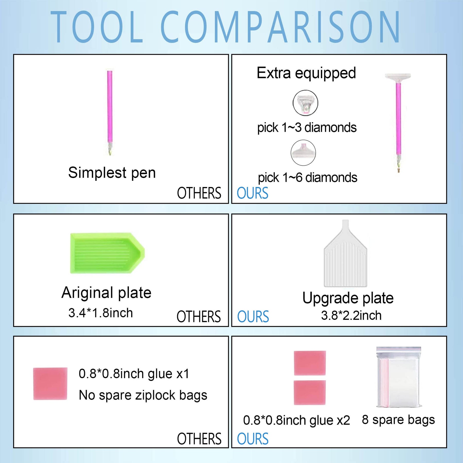 - Diamond Painting KitsInclude 1*HD print canvas,1*pen,1*3-drill pen tip,1*6-drill pen tip,4*glue, 1*plate,10*spare ziplock bags and sufficient number of round diamonds