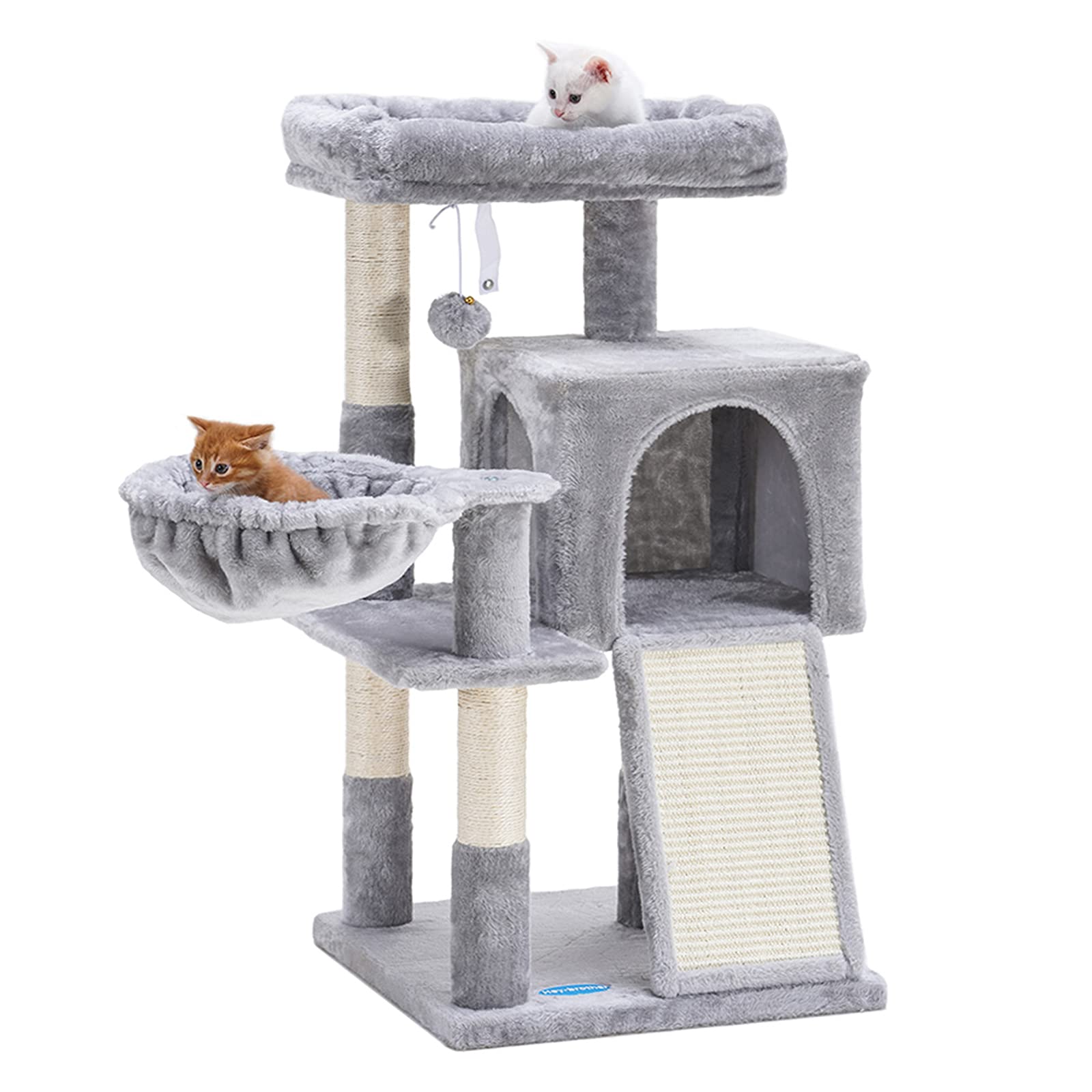 - Original Trees – Cat Tree with Sisal Scratching Posts, Cat Tower with Scratching Board, Cat Condo with Basket,Light Grey MPJ014W by Hey-brother