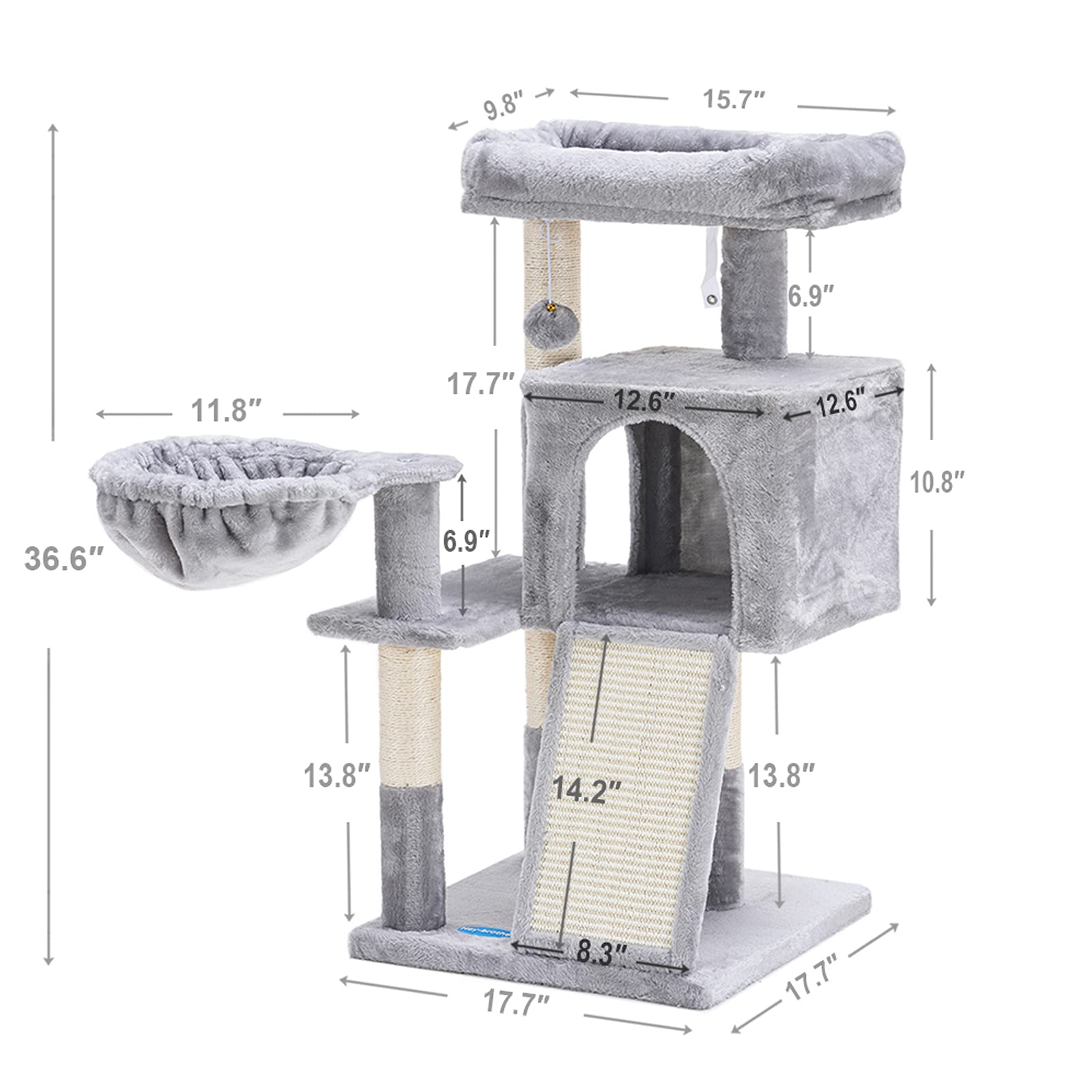 - Easy Assemble: The cat furniture equipped with all the hardware, tools and detailed instructions for quick and easy installation. Overall Size: 17.7 x 17.7 x 36.6inch. Suitable for 2-3 cats of different ages to climb and play.