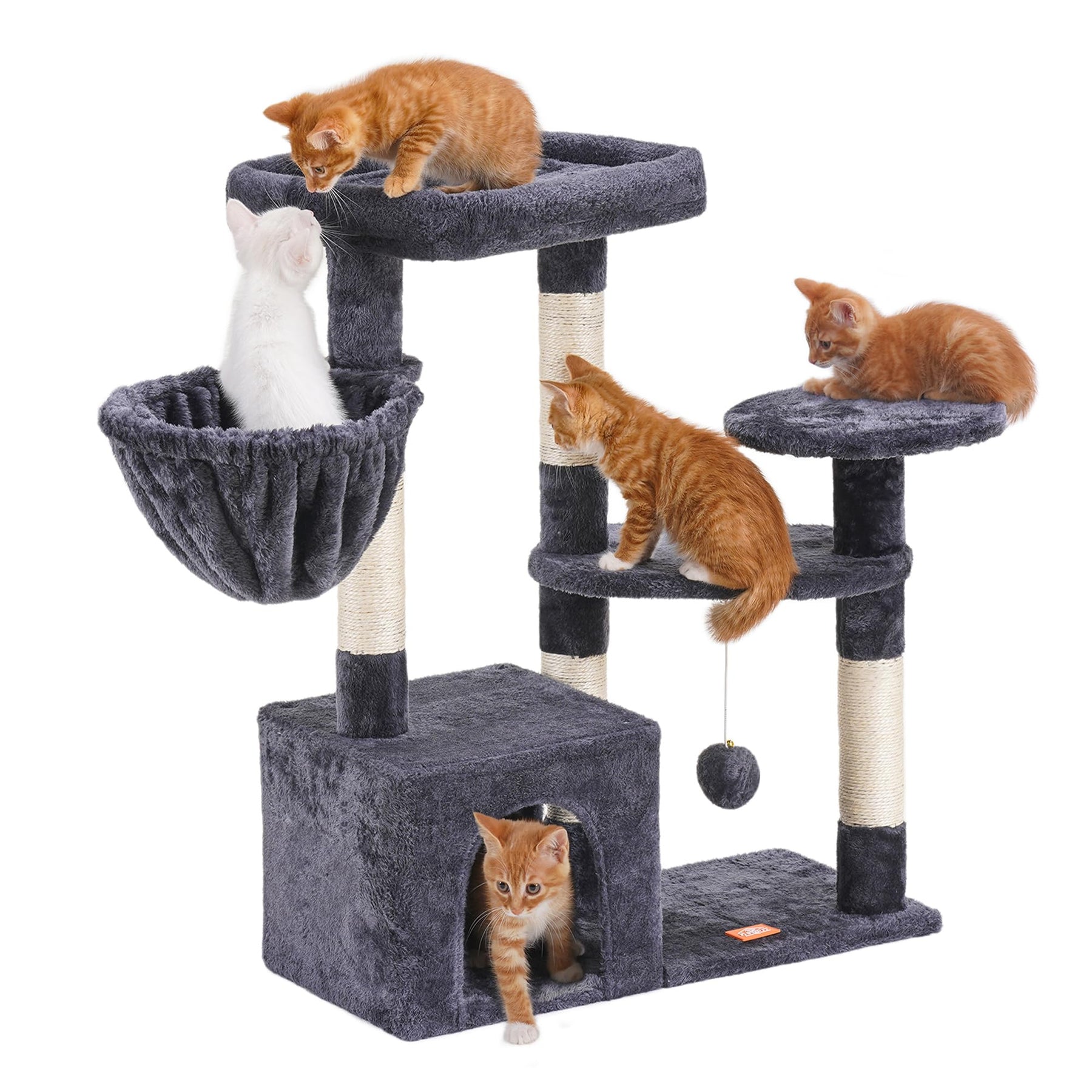 - Stability is the Primary Consideration for a Cat Tower: Reinforced cat climbing frame base, sisal wrapped scratch posts and Anti-toppling devices ensures the security of active kittens and cats playing on the activity centre