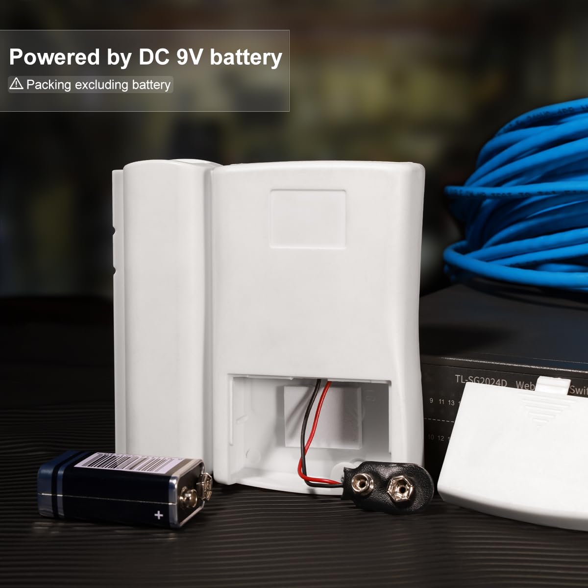 - Cable tester automatically tests the continuity, open, shorted of twisted pair data wiring (RJ45/RJ11/RJ12 ) connections; Visible LED status display.(DC9V battery/charger not included)