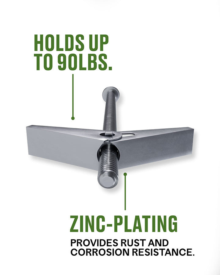 - Durable toggle bolt great for hanging objects on hollow wall
