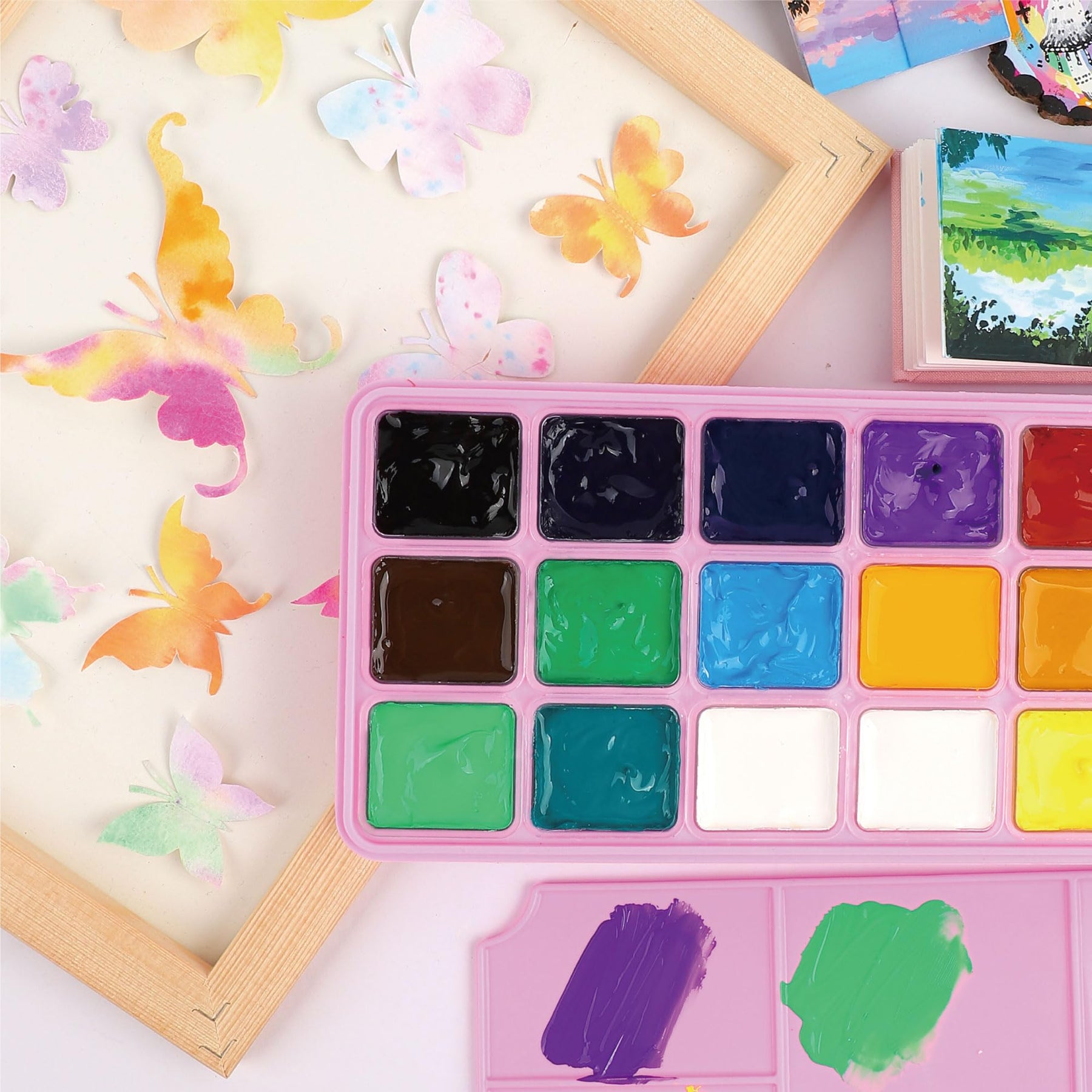 - Portable Case with Palette: Includes a simple palette and a storage case with grids, which doubles as both a palette and a portable bag. Convenient for painting indoors or outdoors