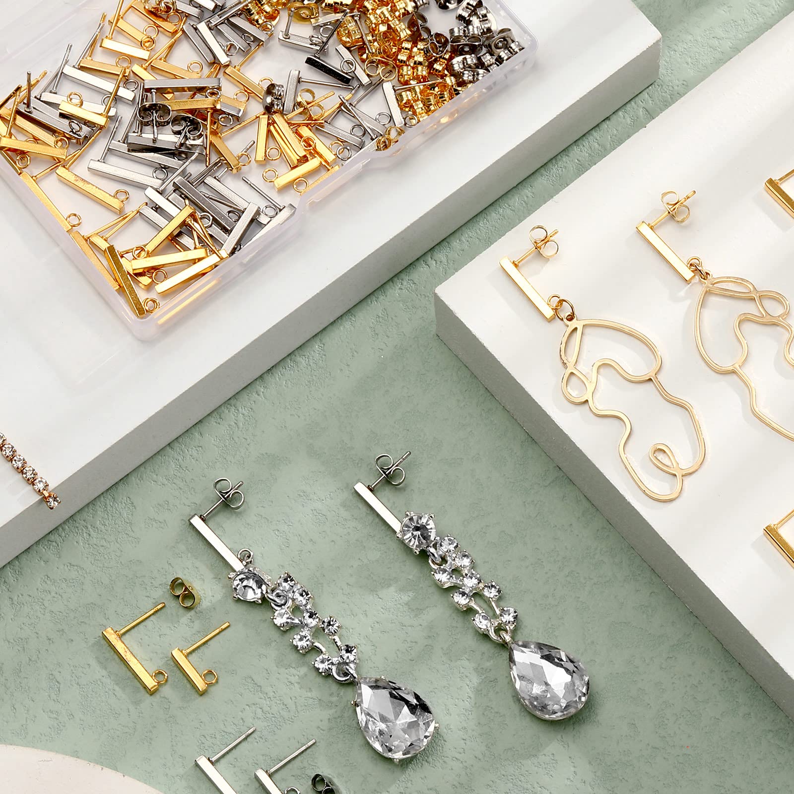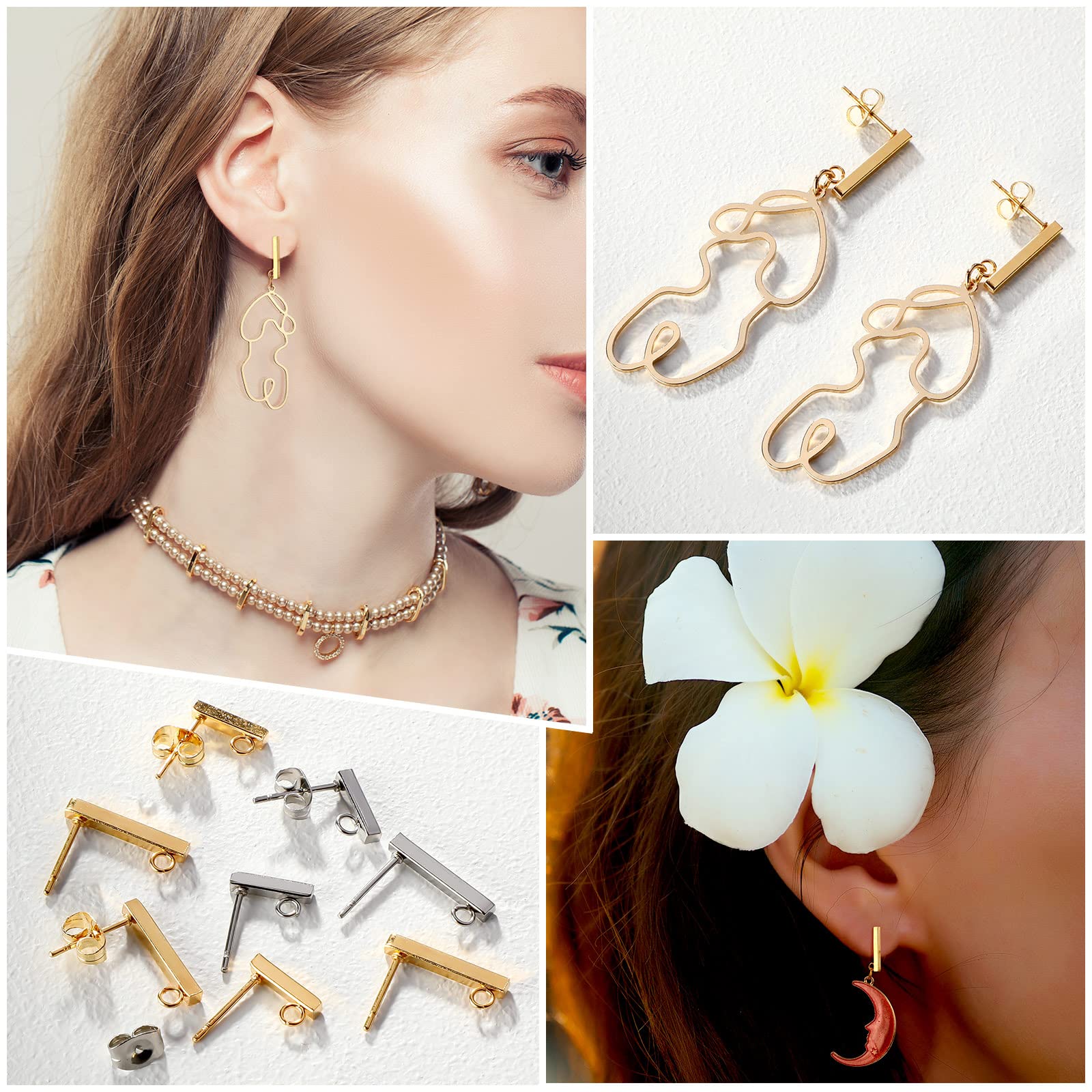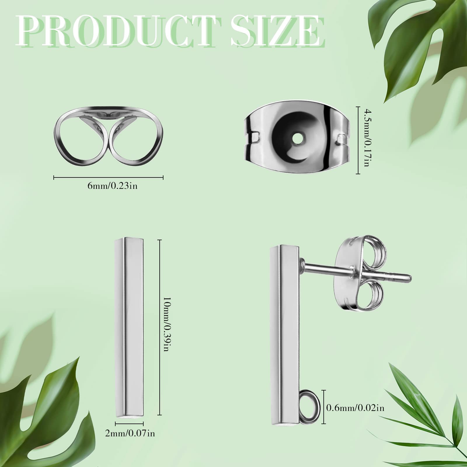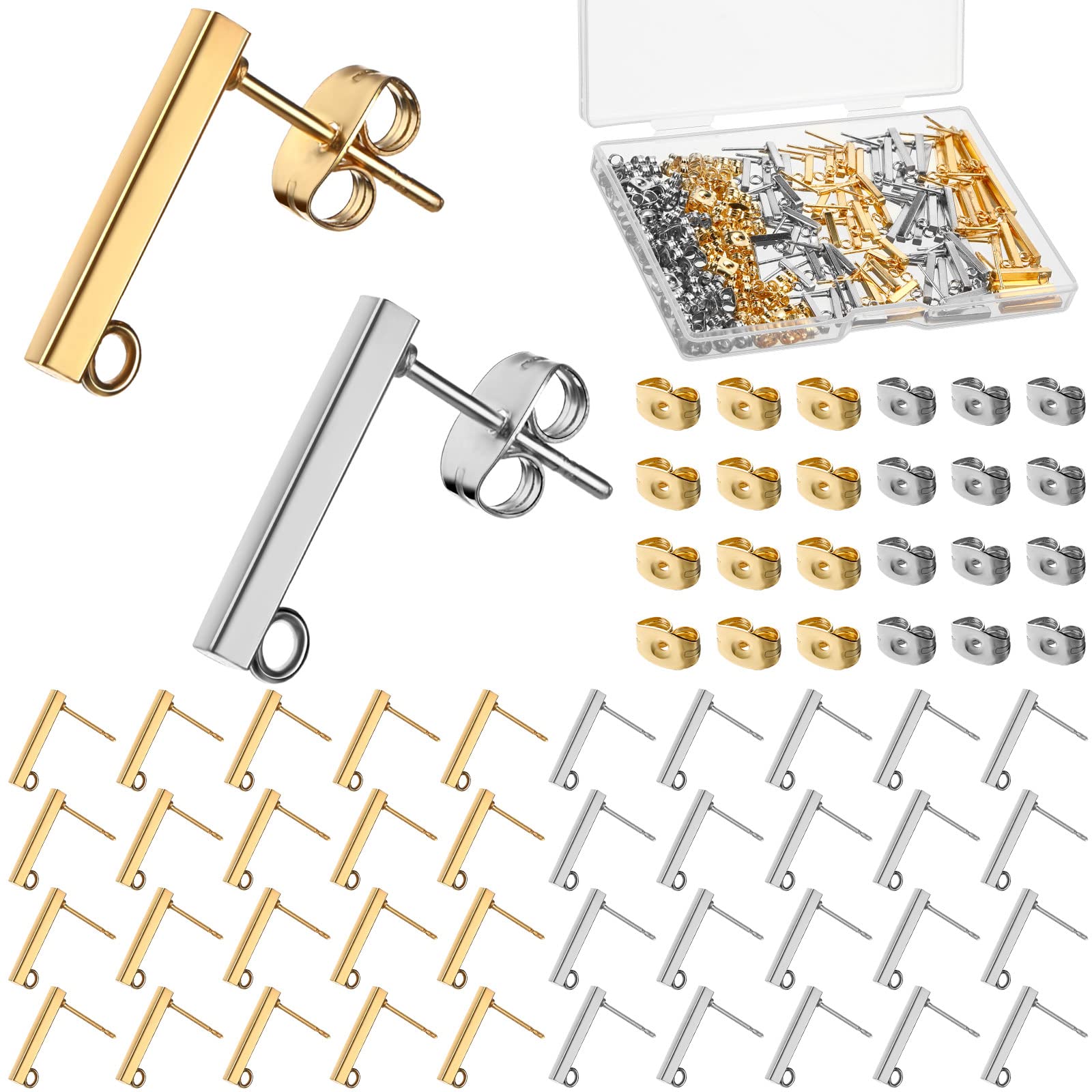- Original Earring Backs & Findings – 80 Pieces Stainless Steel Earring Posts Stud Earring with Loop Rectangle Earring with 80 Pieces Ear Nut Bar Pierced Post Stud Earrings for DIY Earrings Jewelry Making, 2 Sizes(Silver, Gold) by Hinly