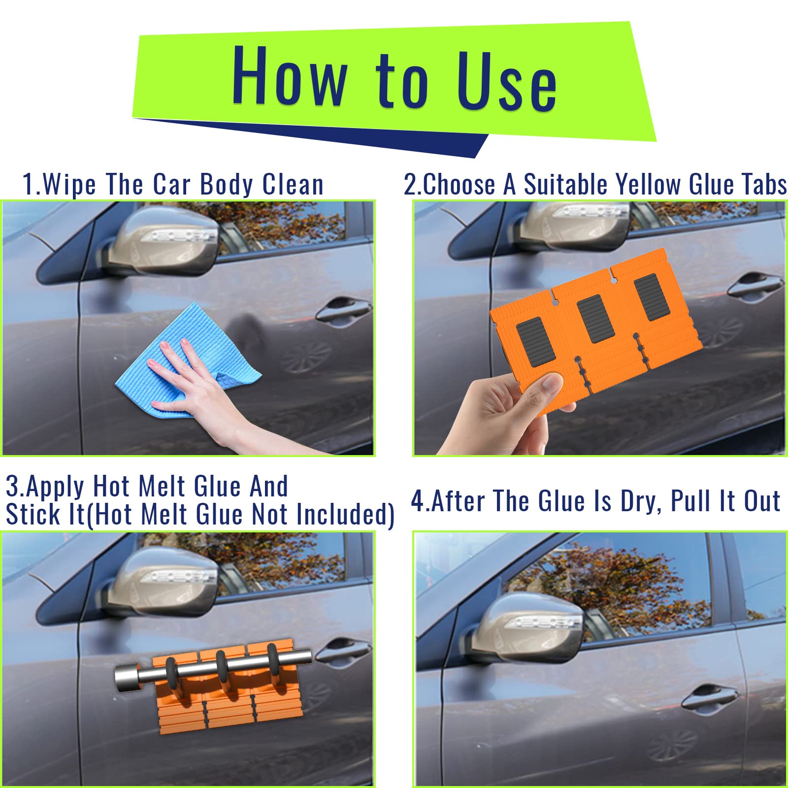 - Original Dent Removal Tools – Car Dent Repair Tools Heavy Duty Paintless Repair Removal Tools Strong Dent Puller Handle Lifter Yellow Glue Tabs Powerful Body Repair Dent Remover Tool Kit for Car Dent Repair (Yellow) by HiYi