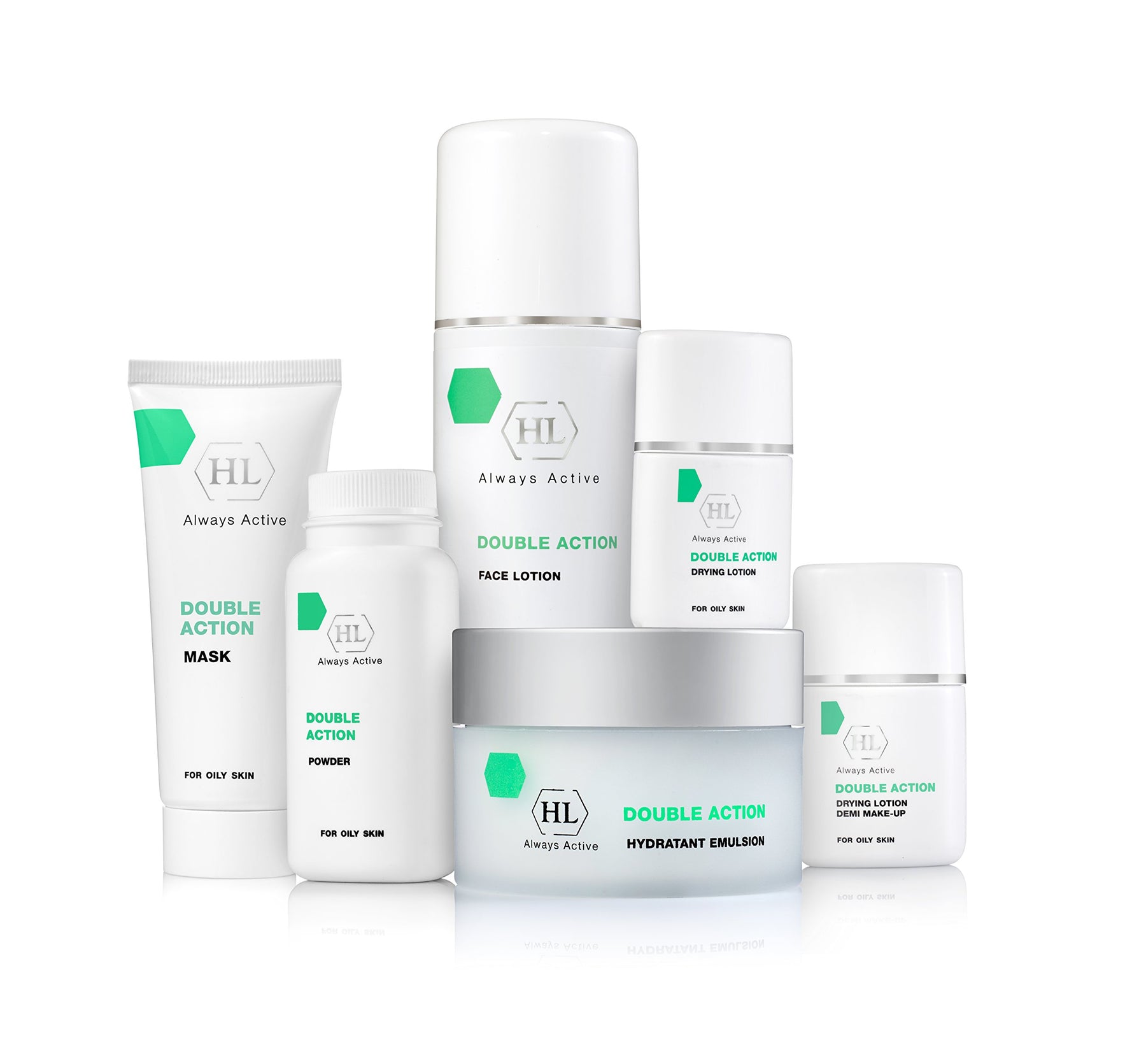- Double Action balances the activity of sebaceous glands, reduces sebum excretion to prevent oily sheen and blemishes.