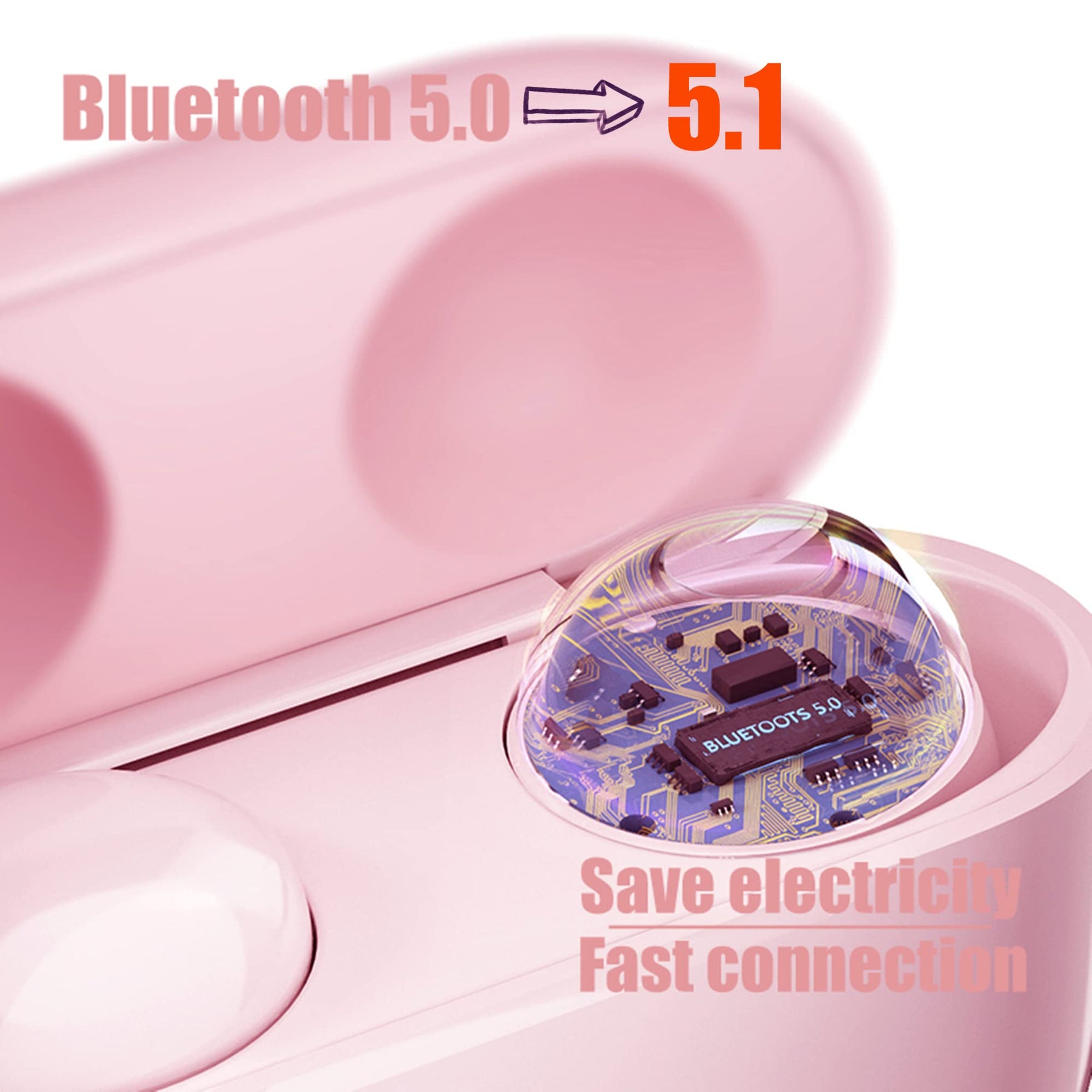 - Super lifeThe headphones use bluetooth 5.1's low-power technology ,Listen to music continuously for 4-6 hours,And it has a large charging case,You can charge your headphones ,It can be filled for about 3-5 time,That means it can listen to more than 30 hours of music ,Don't worry about running out of electricity.