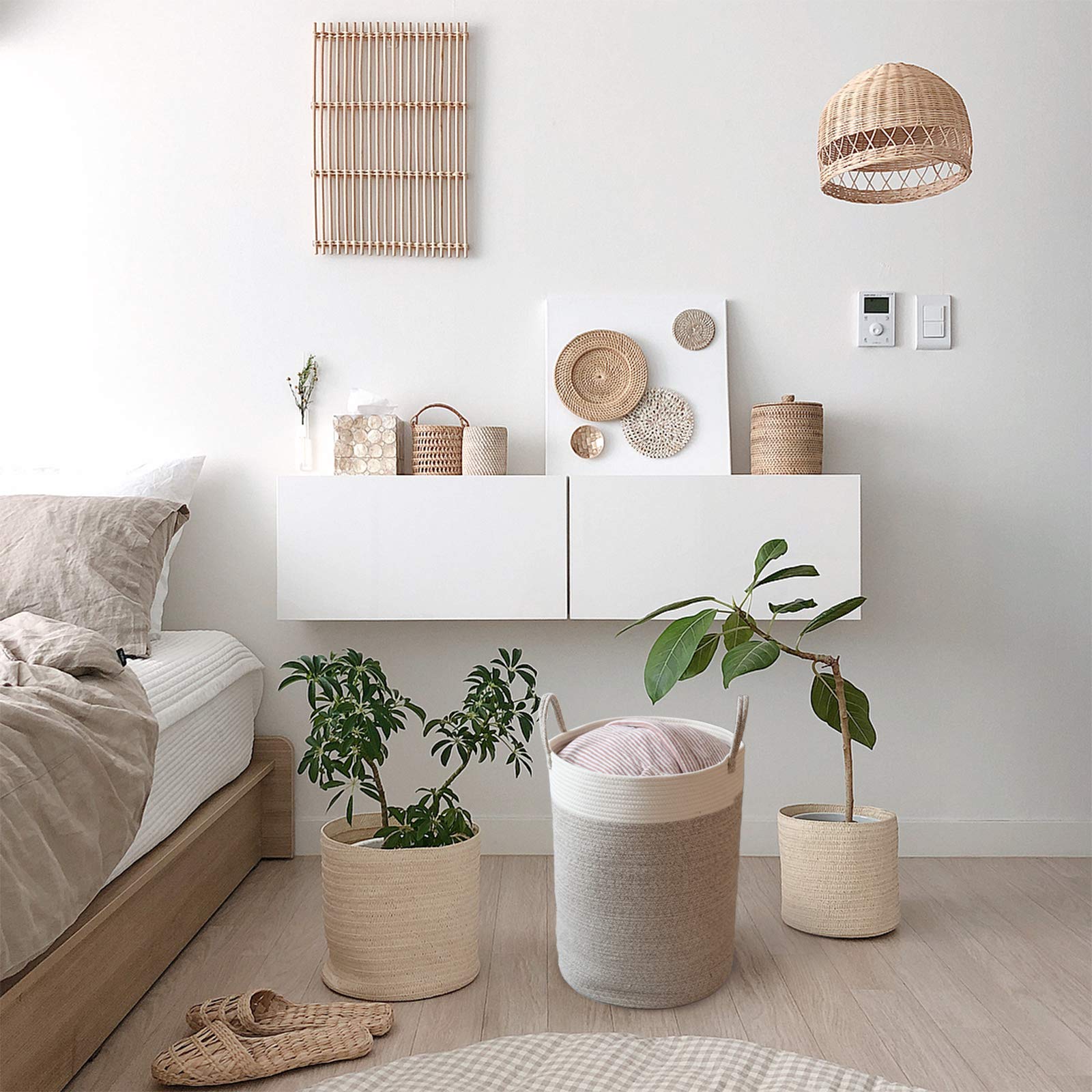 - Cotton Basket: 100% cotton rope made, no smell, It is safe to use and create a good sense of nature in your home