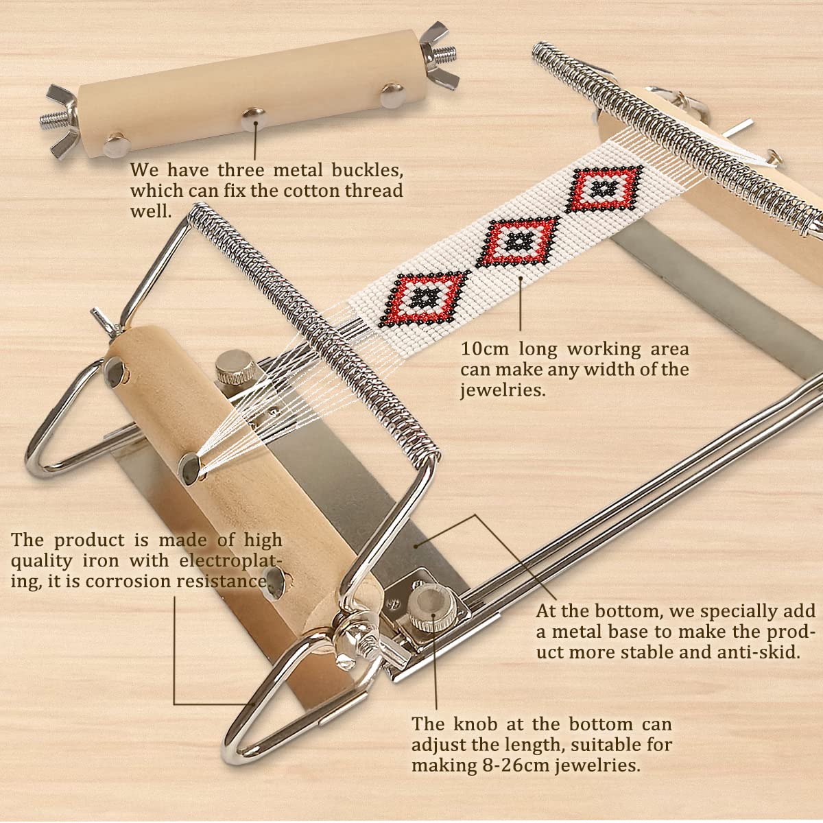 - THE HOBBYWORKER METAL BEAD LOOM: This new beading loom, unlike the previous one, has a removable and retractable design at the bottom; you can adjust the beading length according to your own preferences. Made of iron plating, it can be reused for a long time, rust-proof and corrosion-resistant. The whole beading loom is light and delicate, portable, easy to operate and use, which is very suitable for novice and adult to make jewelry.