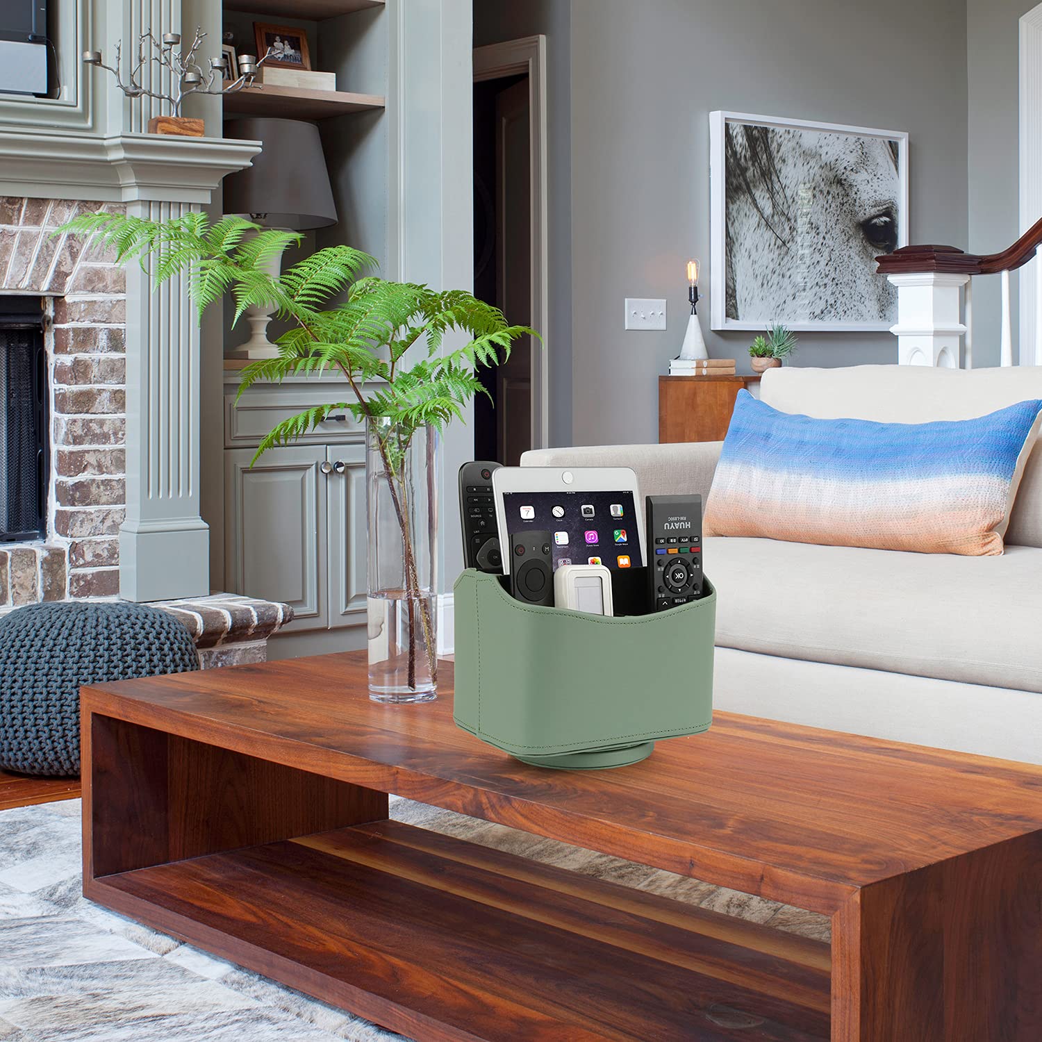 - Original Office Storage Supplies – Spinning Remote Control Holder, Remote Caddy, 360 Degrees Rotatable Remote Control Organizer, Desktop Organizer Caddy Holder, PU Faux Leather (Light Green) by HofferRuffer