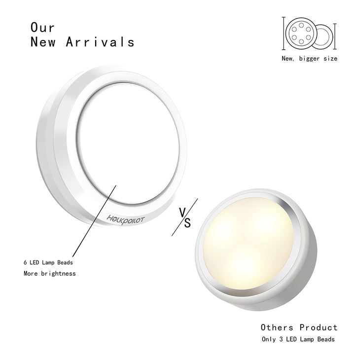 - HIGH-QUALITY & LATEST STYLEHOLKPOILOT puck lights with remote is a high-quality product with a diameter of 3.5 in. From material to design, battery operated lights with remote to embody the highest level of craftsmanship. When you hold it on your hand, you will find what you get more than just one puck lights but a high-quality lifestyle.