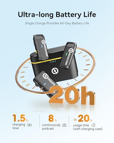 - Original Wireless Lavalier Microphones – Hollyland Lark M1 Wireless Lavalier Microphone with Noise Cancellation, 656ft Transmission,8H Battery Life, Compact Wireless Lapel Microphone System for DSLR Cameras/iPhone/Android/Live Streaming by HollyView