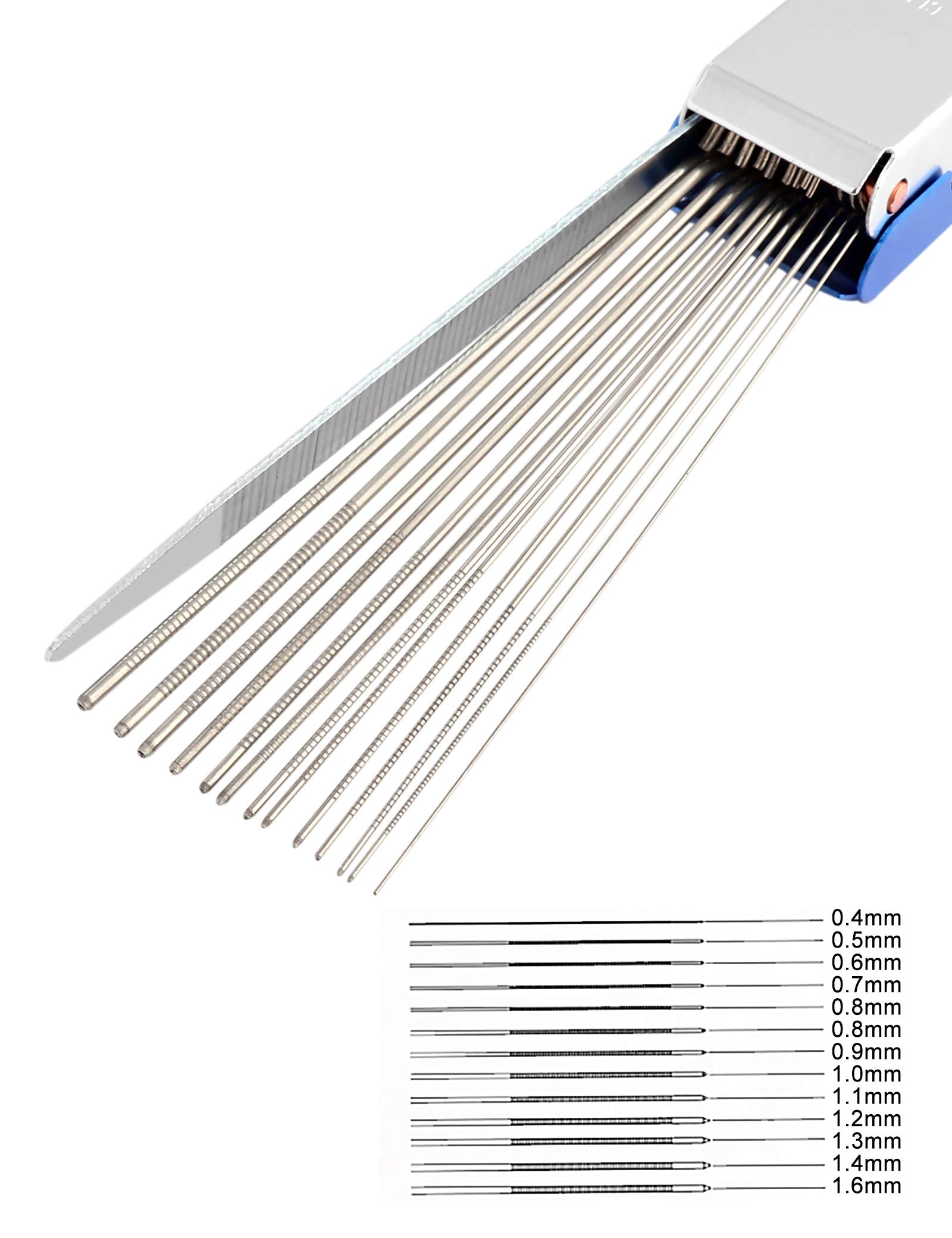 - The depth of string slots of thirteen round files: 0.4mm, 0.5mm, 0.6mm, 0.7mm, 0.8mm, 0.8mm, 0.9mm, 1.0mm, 1.1mm, 1.2mm, 1.3mm, 1.4mm, 1.6mm. Aluminium carry case size: Approx: 102mm x 23mm x 12mm/ 4.05 x 0.9 x 0.47. 100% brand new, never used, testing is fine.