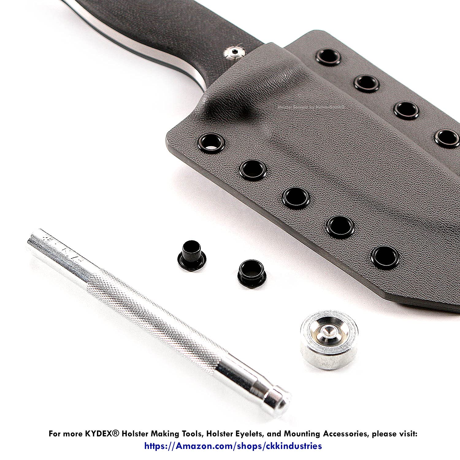 - #8 (1/4) Eyelet Hand Setter : Fits Eyelet Size: (#8)(1/4 Inch Eyelet Diameter)(This Handtool Creates A Rolled Eyelet Finish) | Makes Setting Eyelets Easy: The CKK Eyelet Hand Setter and Base are designed to help you bind two or more pieces of KYDEX, Leather, Canvas, or virtually any material using standard binding eyelets. With a couple of simple taps with your hammer on the flaring ram, you’ll quickly be setting eyelets with a blemish free rolled finish.