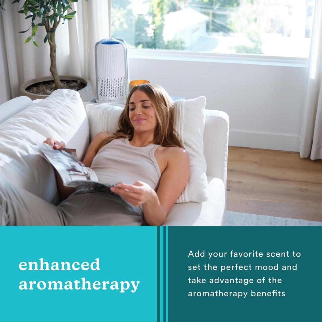 - SET YOUR PERFECT MOOD – The perfect bedtime mood can be set in seconds with the optional night-light; add your favorite scent to the HEPA home air purifiers with 3 included essential oil pads and pair with any essential oils (sold separately)