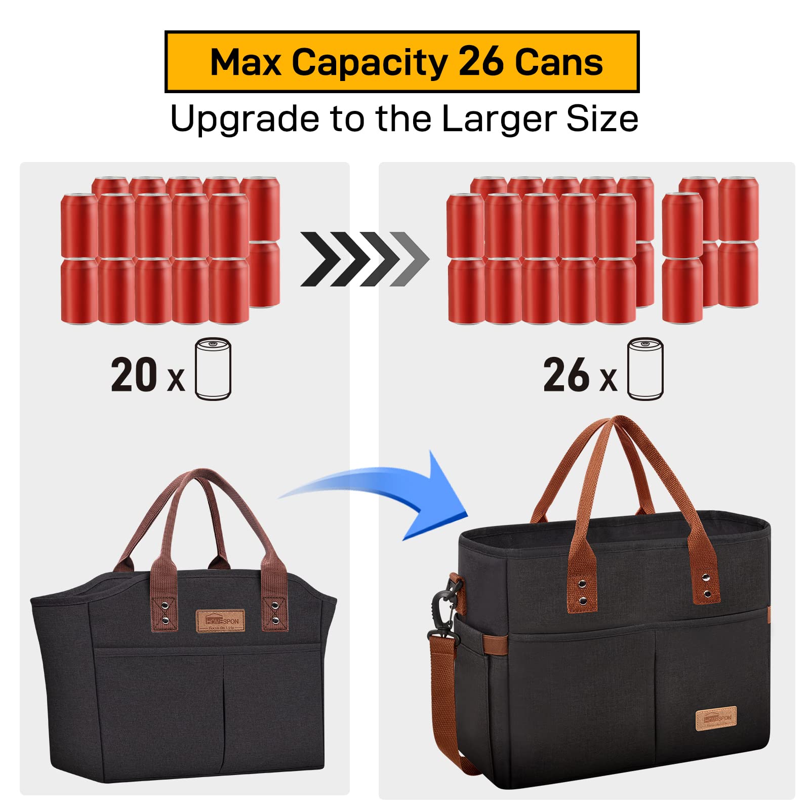 - LARGE CAPACITYDimensions: 11.8 L x 5.8 W x 9.8 H inches. The bag is designed with three pockets: a main pocket, a front button pocket and one back zipper pocket. It can hold 20 cans of cola, providing adequate and organized storage for food, drinks, cutlery and other personal effects.