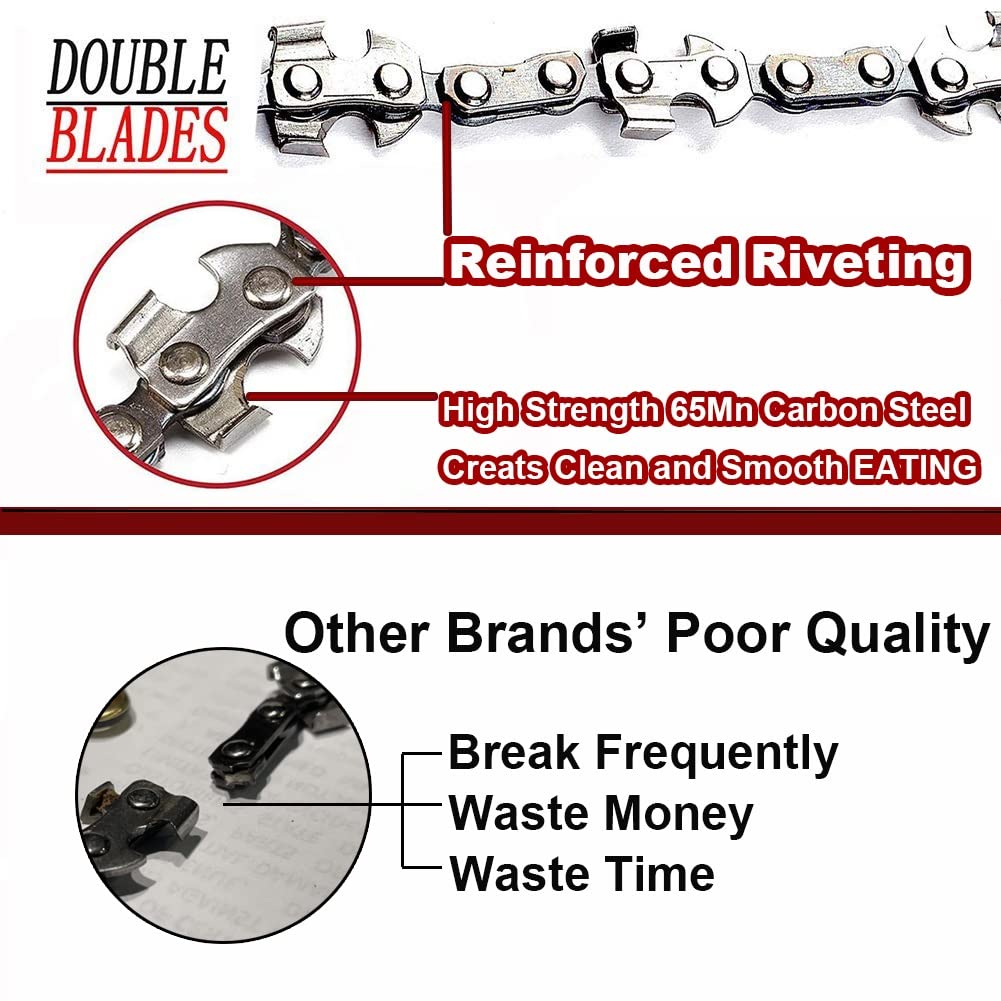- More Blades- The High Limb Rope Chain Saw has an Upgraded 48 Inch Chain with double sided teeth on both sides-62 Sharpest Carbon Steel Teeth. Arched double layered riveted links add strength to connecting chain and stabilize flex, reducing breakage and binding