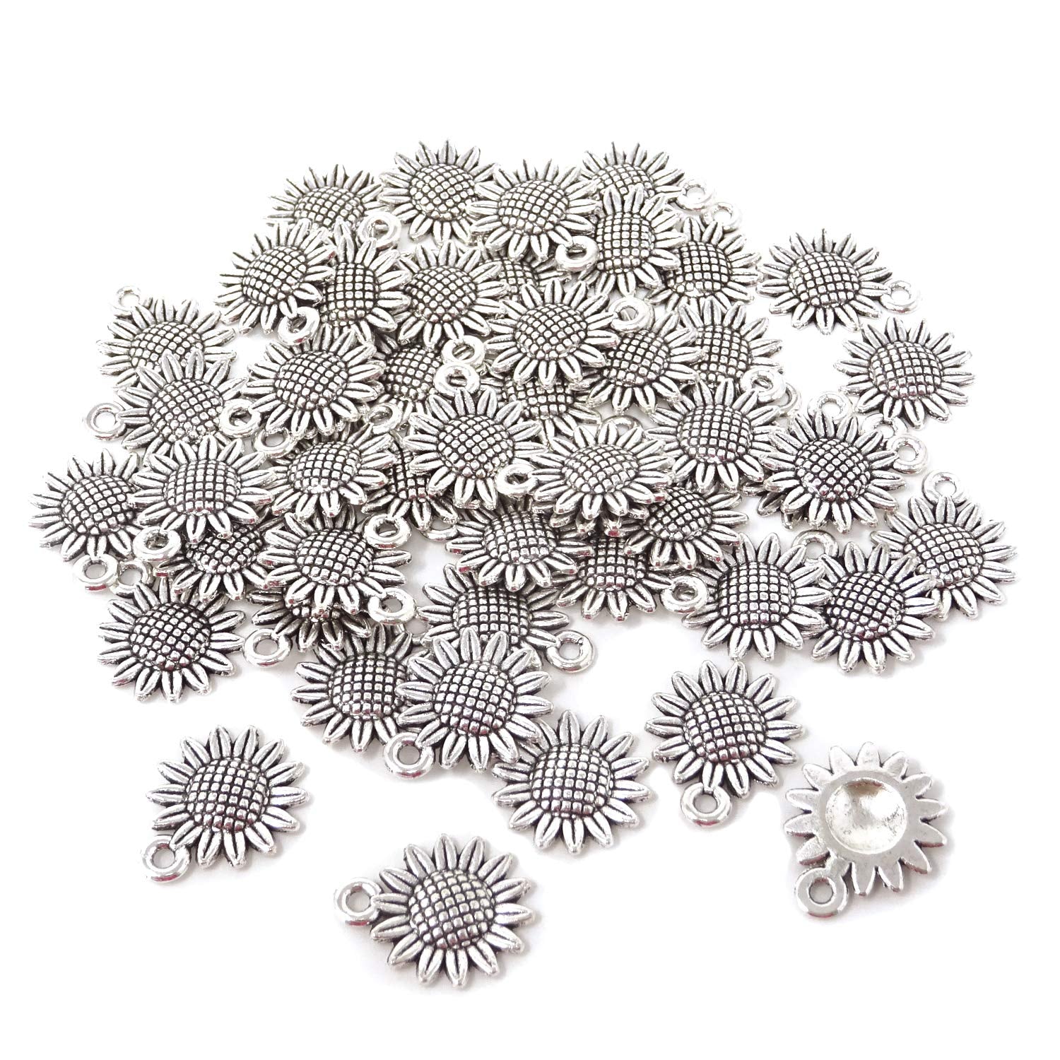 - Original Charms – 50PCS Vintage Alloy Sunflower Charms Pendant for Jewelry Making or DIY Crafts (Silver) by Honbay