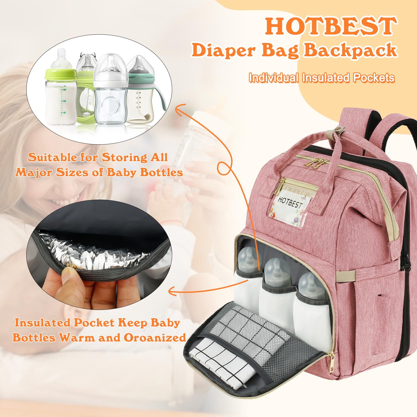 - Tons of StorageHOTBEST diaper bag includes 2 main compartments, 3 insulated pockets (Fit for All Major Mllk Bottles), 16 independent pockets. Enough space and easy sliding zipper (single Hand operation), making your journey more free and convenient.