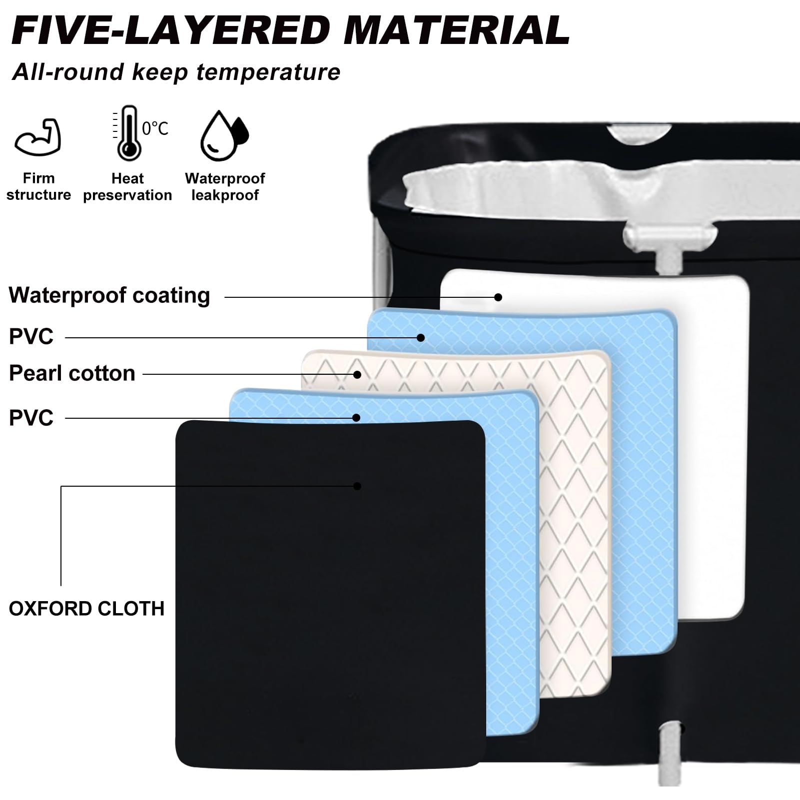 - Excellent thermal insulation:The upgraded version of the portable bathtub is made of high-quality waterproof materials, high-density thermal insulation materials, resist cold air, and enhance the thermal insulation effect. When you take a bath, close the lid, double insulation effect is better. Enjoy the SPA at home.