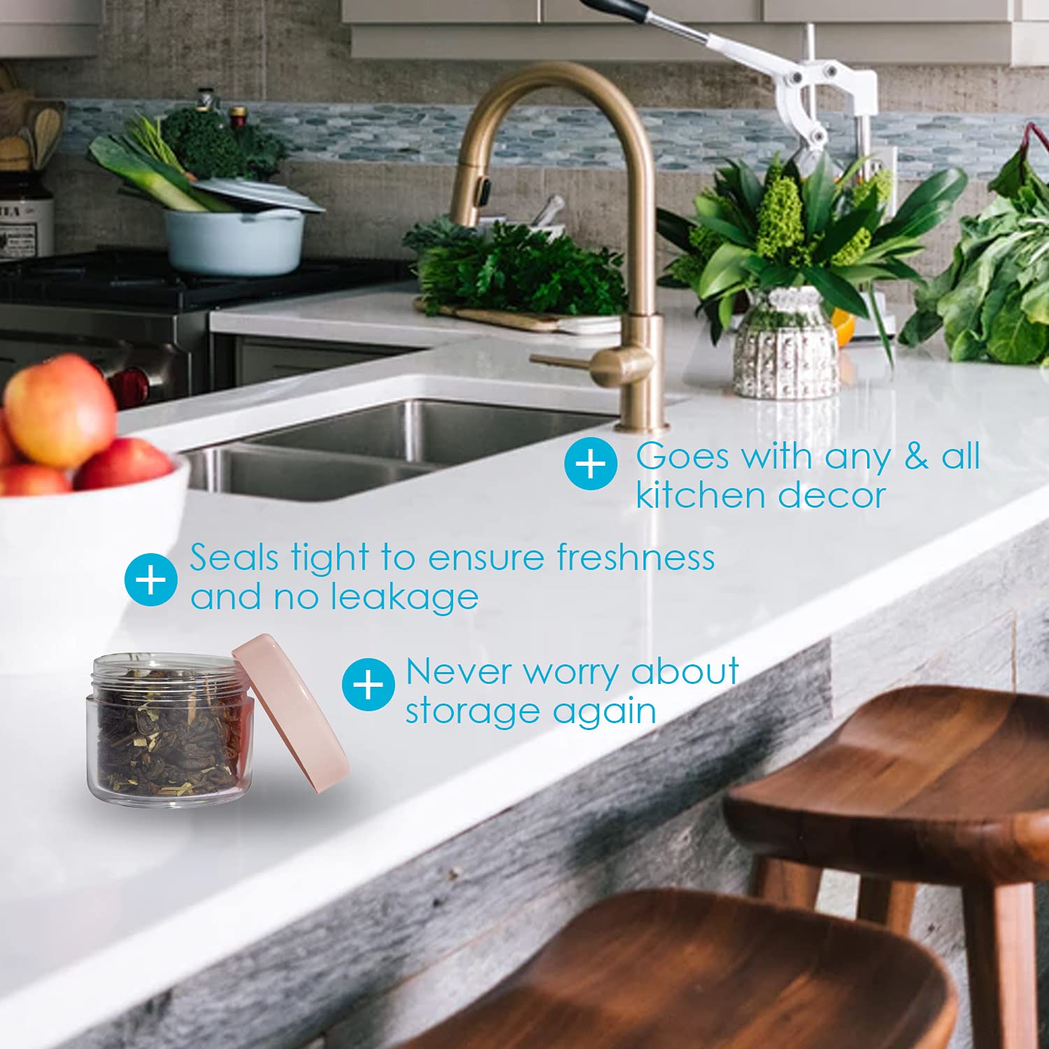 - COSMETICS, COOKING AND MUCH MORE: These jars are perfect for storing mineralized makeup, eye shadows, lotions, lip balms, toners, creams, ointments, acrylic powder, and other beauty aids. They are also suited to hold samples of loose-leaf teas, spices, cooking oils, herbs, medication, paints, small jewelry, and much more.