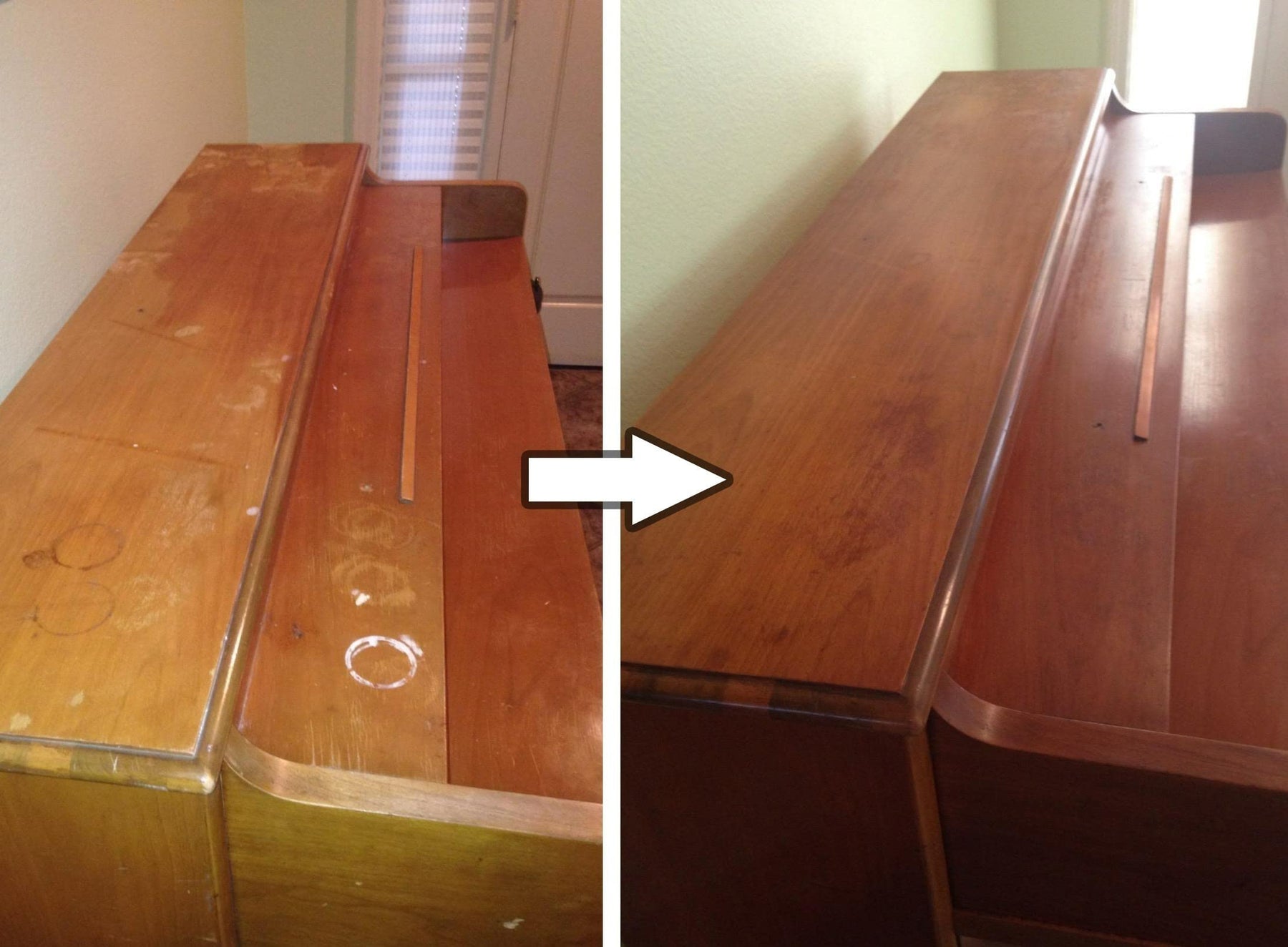 - With a simple wipe-on, wipe-off process, most finished wood surfaces that seem to need a complete refinishing job can be restored in a few minutes