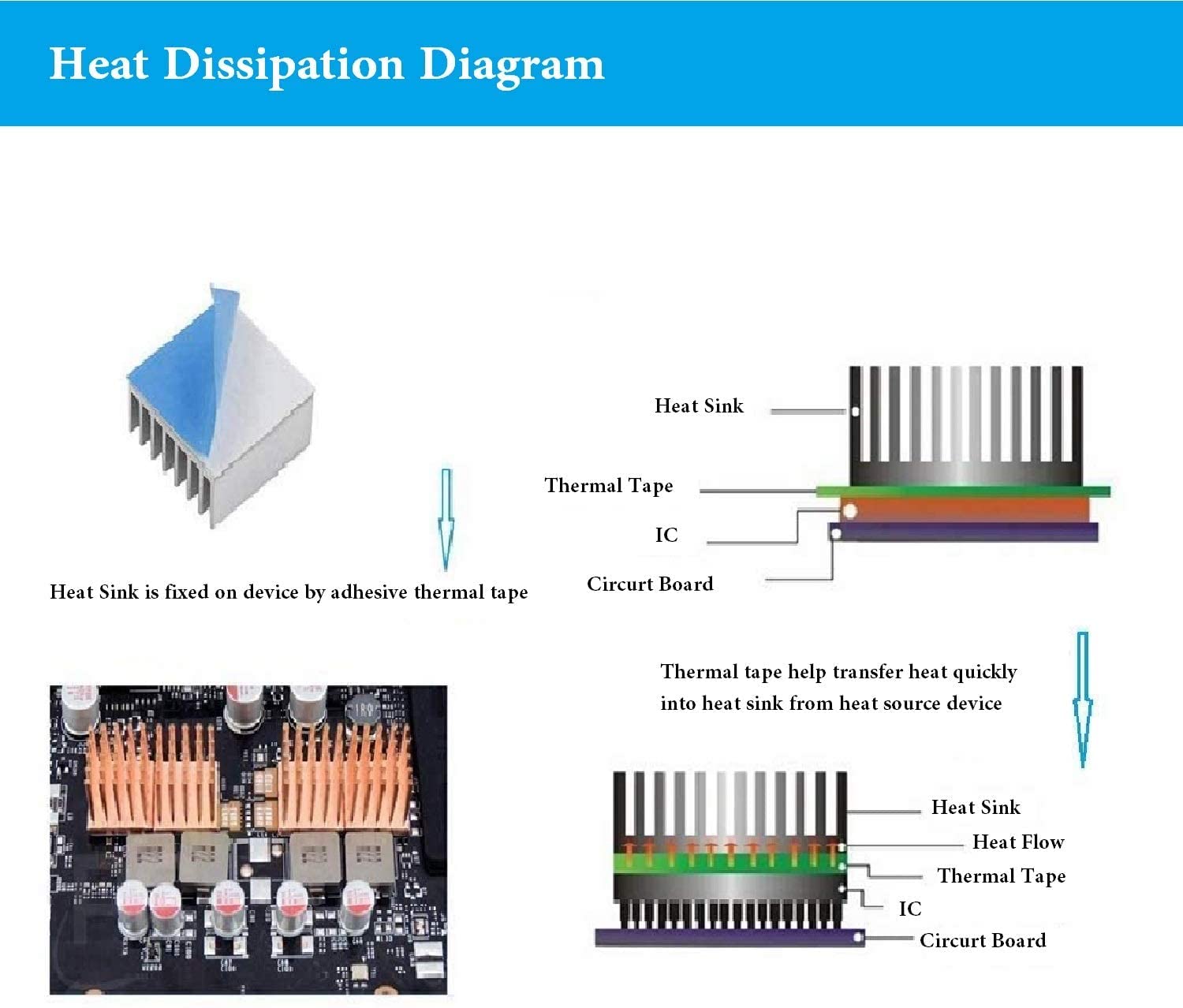 - Thermally conductive tape has very strong adhesion and has good thermal conductivity. It is often used on heat sinks- efficiently transfer heat dissipation for electronics. If combined with thermal paste, the effect will be better.