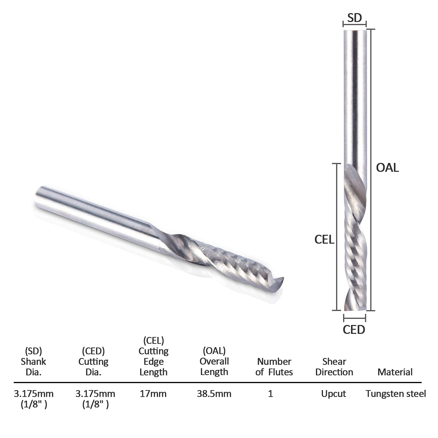 - Original Spiral – 1/8 Shank CNC Router Bits Inch Shank 3.175mm End Mill Single Flute Spiral Router Bit Milling Cutter Upcut Cutting Engraving Single Edged Acrylic Plastic MDF 10 Pack by HQMaster