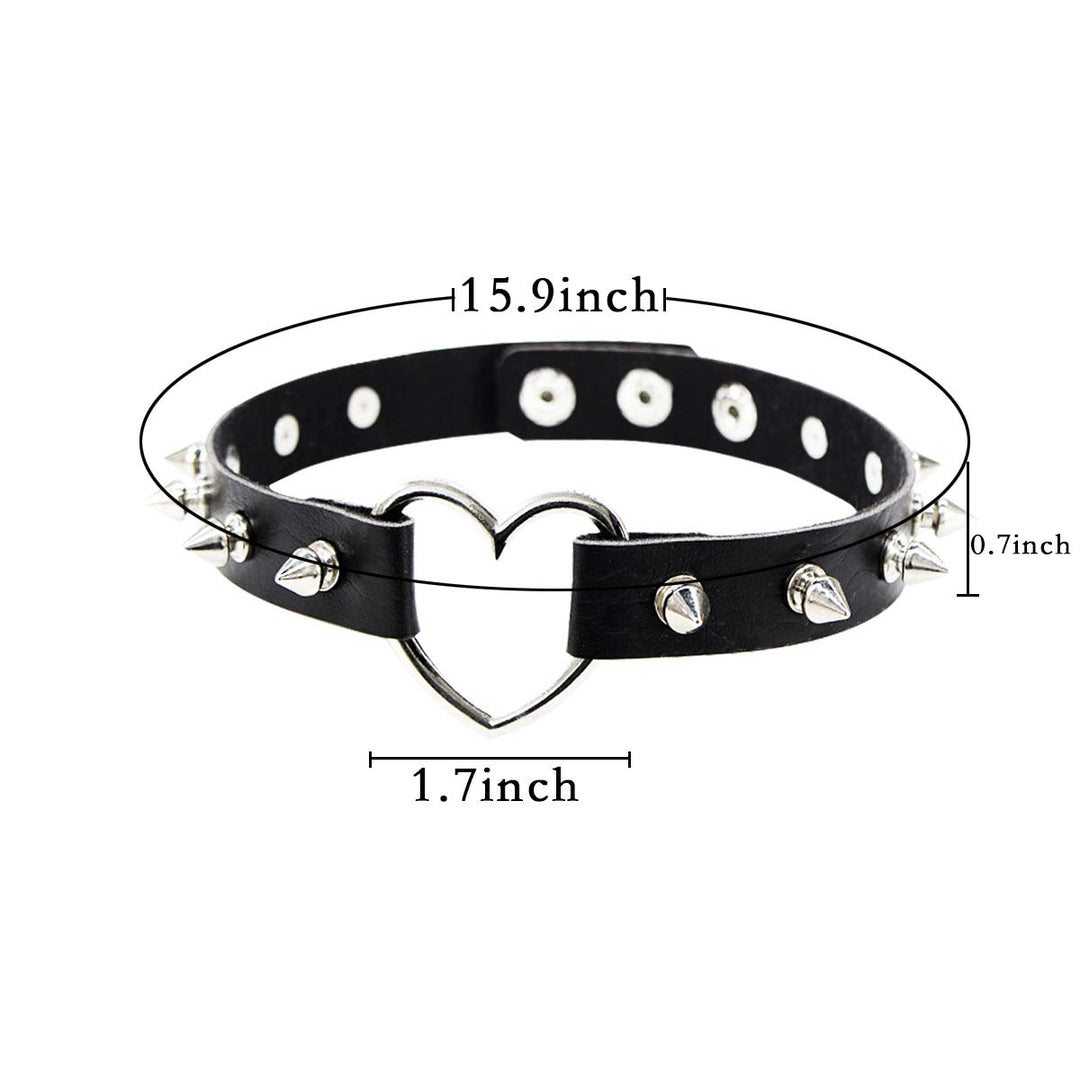 - Size: Love heart spike rivets choker 15.9 x 0.7. Adjustable length with snap buttons, fits most people's neck.
