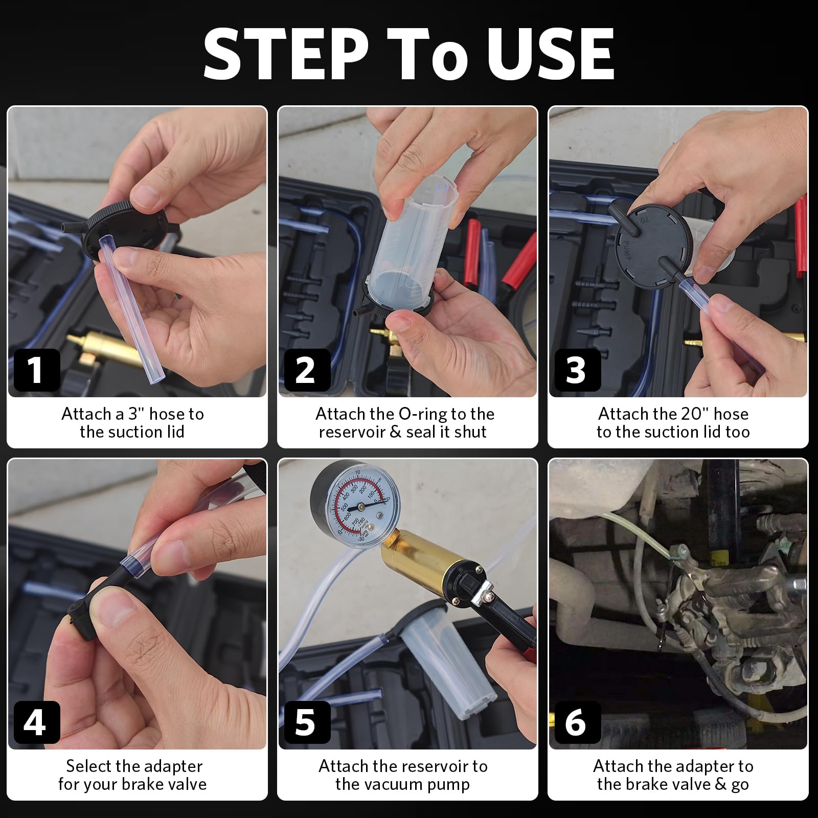 - Easy Usage: Easily bleed brakes by yourself. Hand vacuum pump is easy to bleed your car brakes.