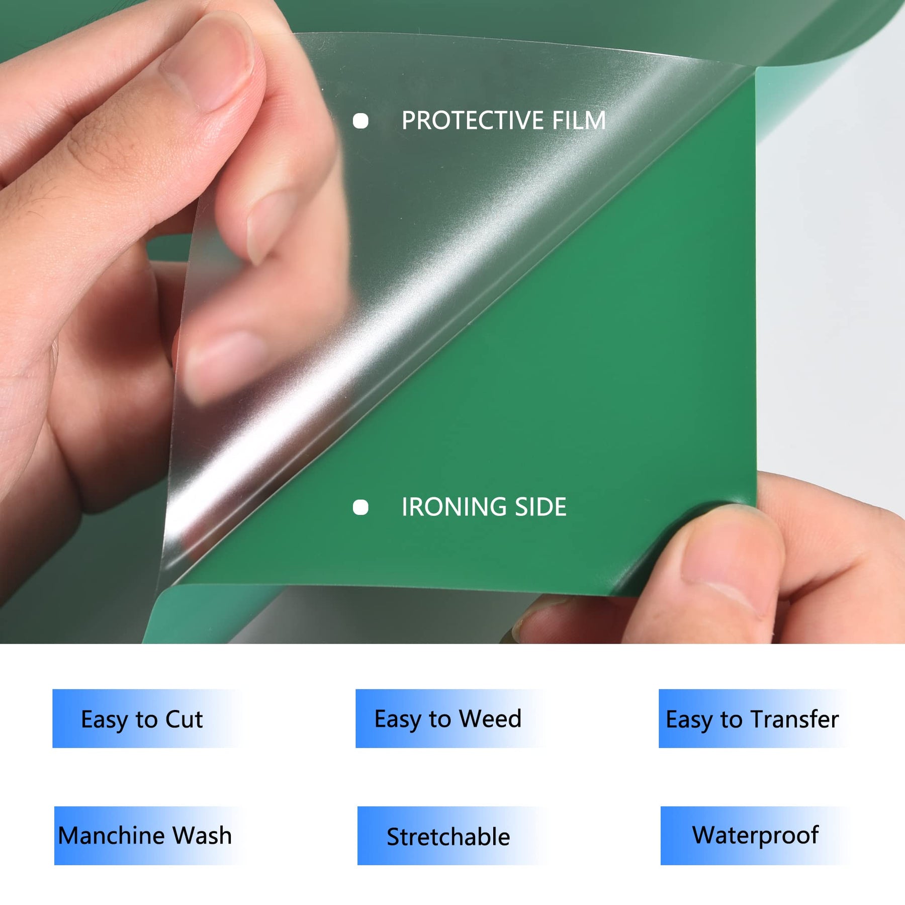- Durable & Eco-friendly:Each HTV holds up well after repeated washes, without cracking, fading and peeling. Since it's SGS certified, our Green htv roll is safe to apply on kids clothing.