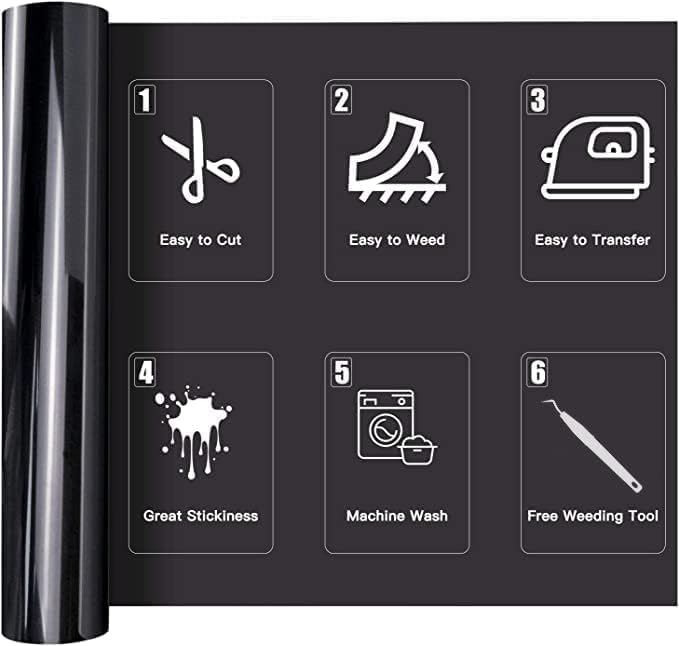 - EASY CUT & WEED & TRANSFER: Our black heat transfer vinyl will save your time which you may waste on each image or letter, because you can cut and weed easily through the designs just right.The iron on vinyl black is sensitive to temperature and pressure, which can be heat transferred on any t-shirt easily