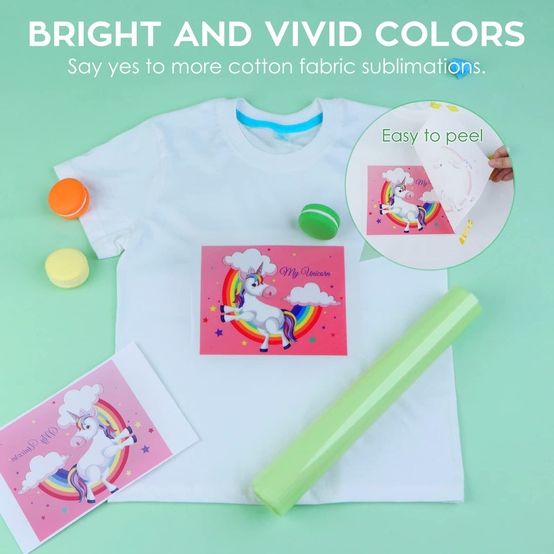 - Vivid & Bright Colors- With over 98% high transfer rate, this clear vinyl is your must-have for sublimation designs on cotton fabric. You will have stunning, bright and crisp results for every sublimation project