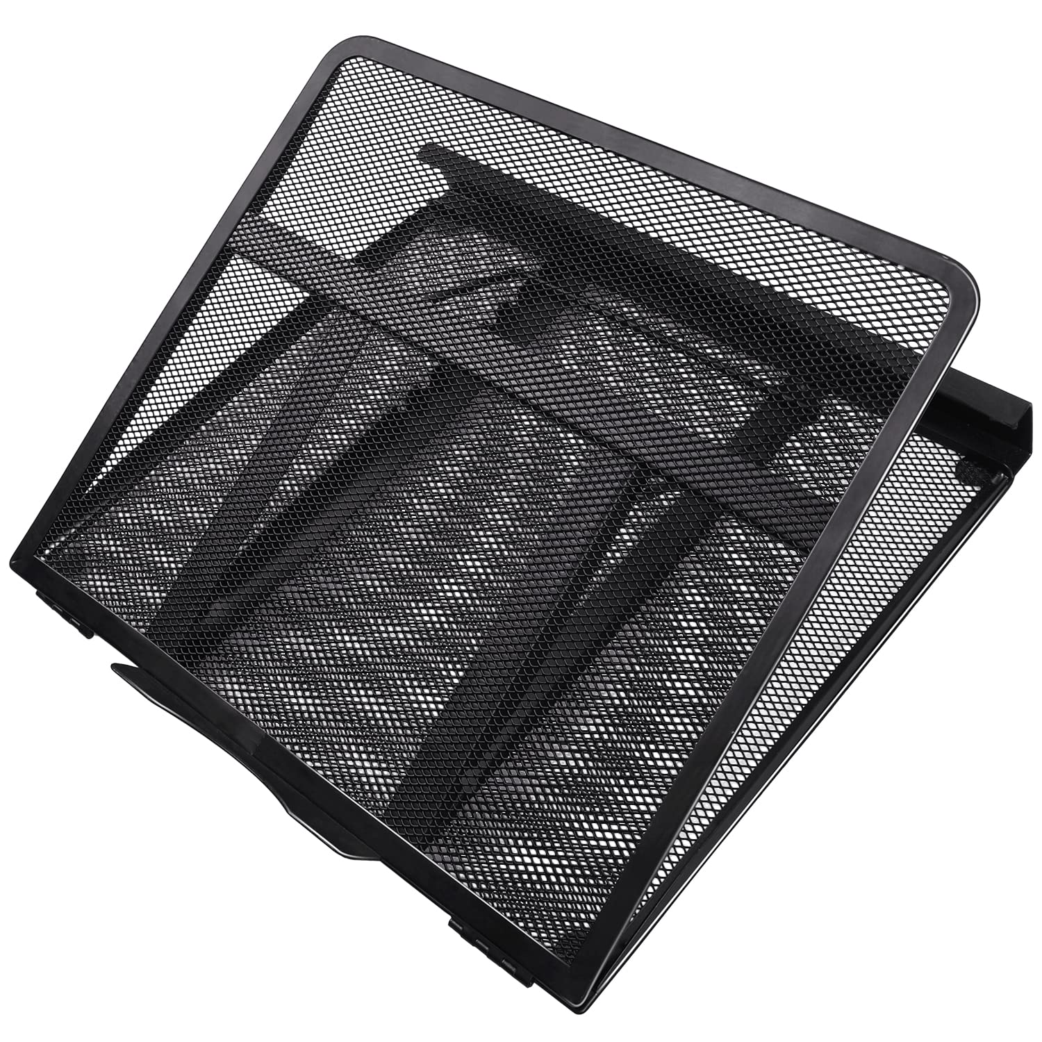 Mesh platform (13” x 11” x 8” (L x W x H)) that improves air flow going towards your device, keeping your laptop cool and prevents overheating and crashing.