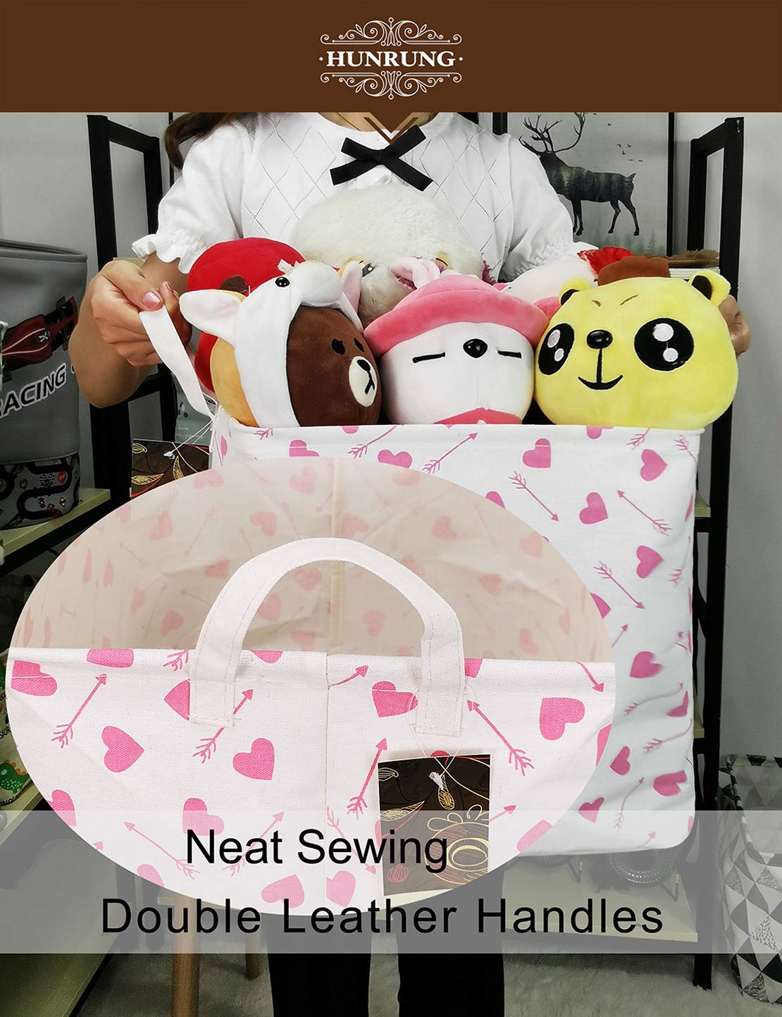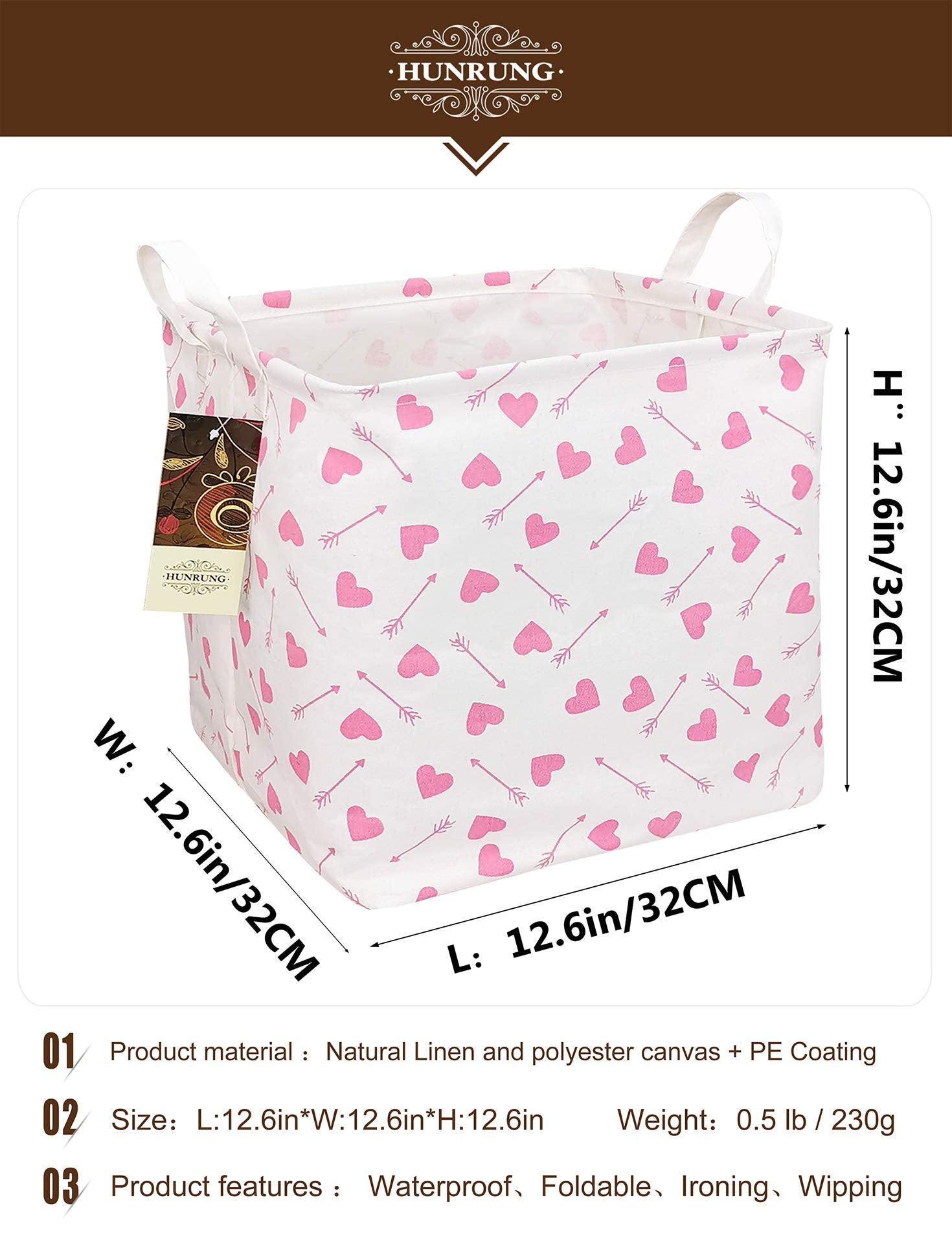 - Original Baskets & Liners – Square Storage Bins Nursery Hamper Canvas Laundry Basket Foldable with Waterproof Nursery Boxes for Shelves/Gift Baskets/Toy Organizer/Office, Bedroom (Square-Pink-heart-arrow) by HUNRUNG