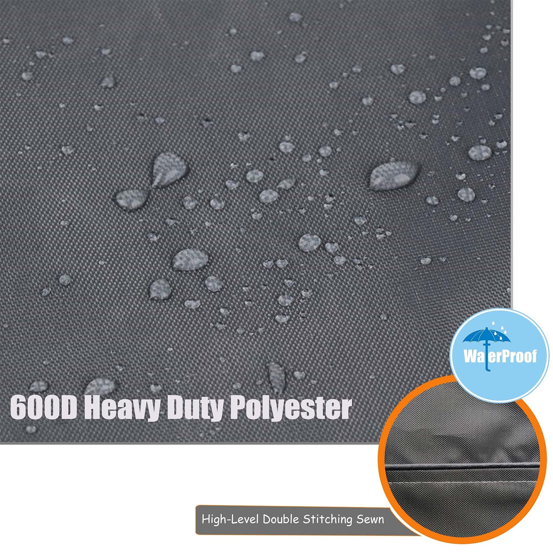 - ELEGANT GRAY AND WHITE STITCHING DESIGN: The patio furniture covers made of 600D heavy-duty Oxford fabric, PU waterproof, three-layer protection, protecting outdoor furniture from sunlight, dust, rain, snow, and other outdoor factors