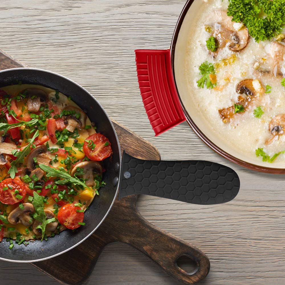 - Non-slip design: mini cast iron skillet pot holders covers and heat resistant pot holder sleeves can fit your cast iron frying pan snugly; Anti-slip texture and internal silicone ribbing on the handle ensure the security of moving heavy hot pans, which can effectively prevent falling; gives the Silicone Hot Handle Holder extra protection for your hands.
