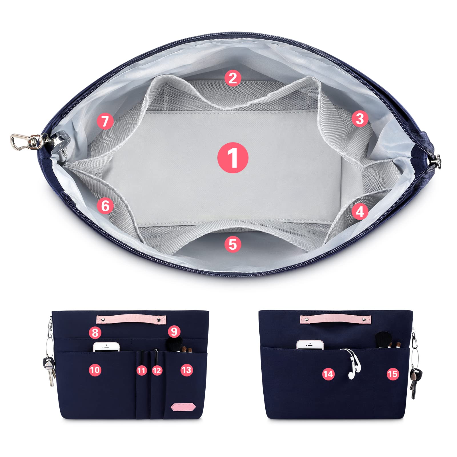 - Original Handbag Organizers – Purse Organizer Insert for Handbags,Tote Bag Organizer Insert Zipper Bag for Women, Handbag Organizer Inside Liner with 15 Pockets, Blue by HyFanStr