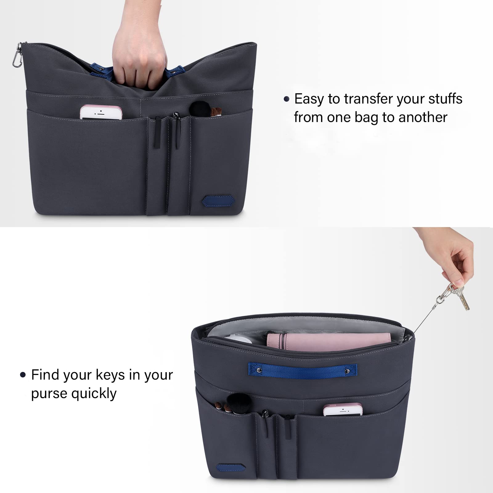 - Original Handbag Organizers – Purse Organizer Insert for Handbags,Tote Bag Organizer Insert Zipper Bag for Women, Handbag Organizer Inside Liner with 15 Pockets, Gray by HyFanStr