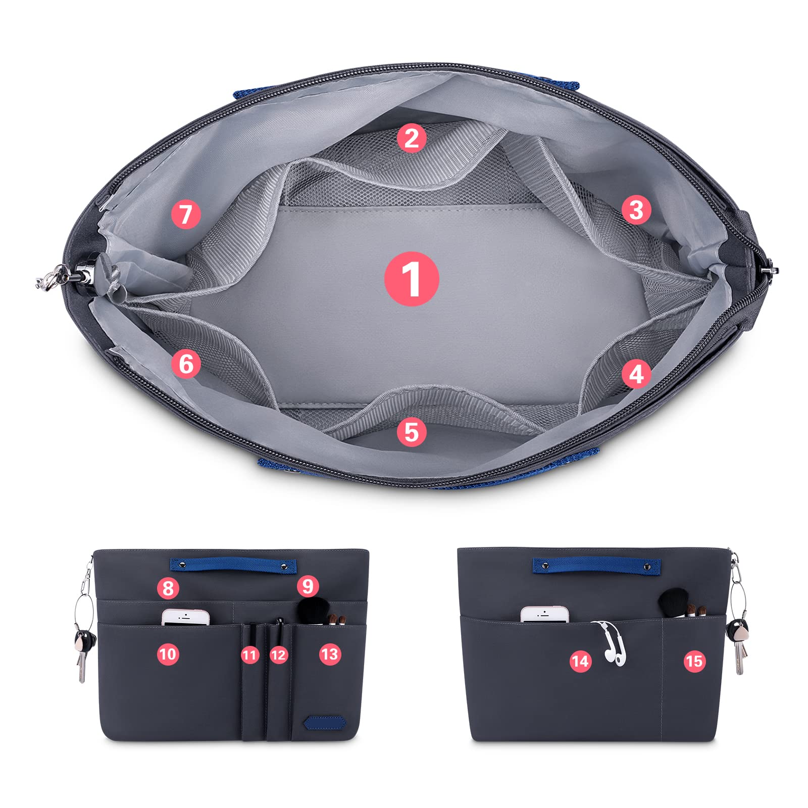 - 15 PocketsManage all cosmetics, glasses case, phone, umbrella, water bottles, keys and other items in place, keep your items well organized and easy find. No more digging at the bottom of the bag!