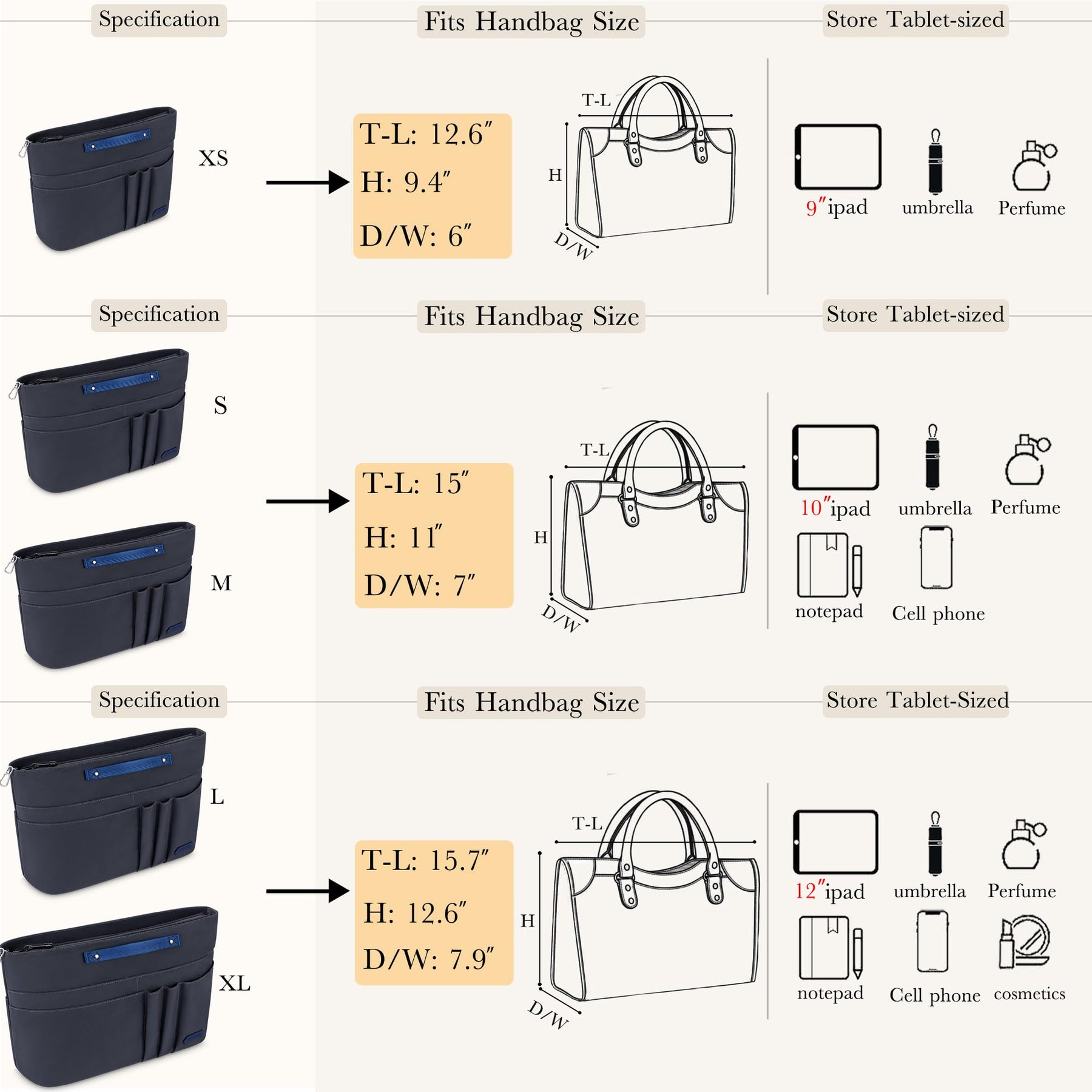 - Easy to Change BagMaintain the shape of the handbag, change your purse in seconds without having to rearrange anything, ideal for daily use and travel. 5 sizes to fully meet your needs, fit for your tote bag, handbag, purse, cosmetic bag, etc.