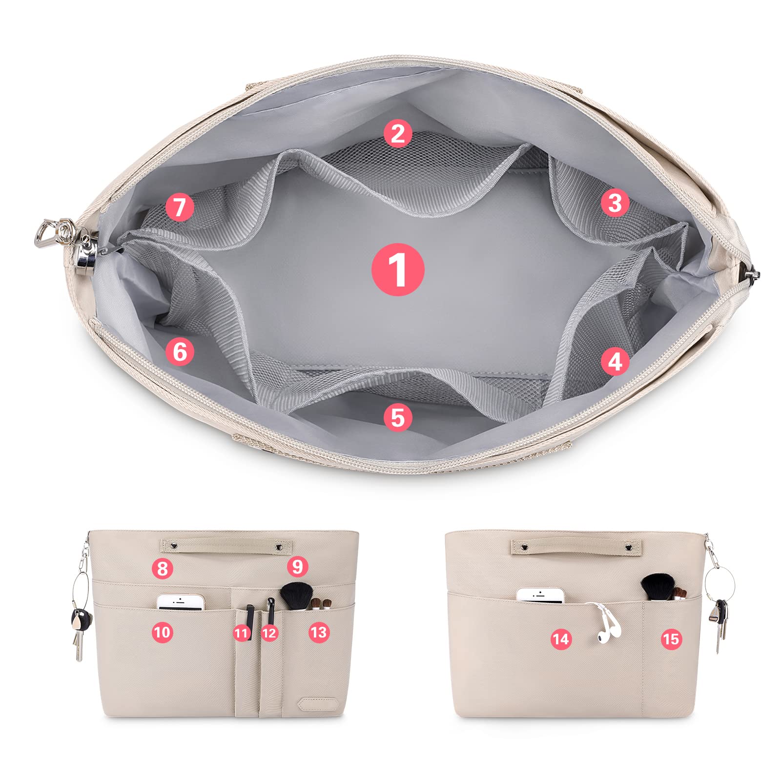 - Original Handbag Organizers – Purse Organizer Insert for Handbags,Tote Bag, Zipper Bag for Women with 15 Pockets, Beige by HyFanStr