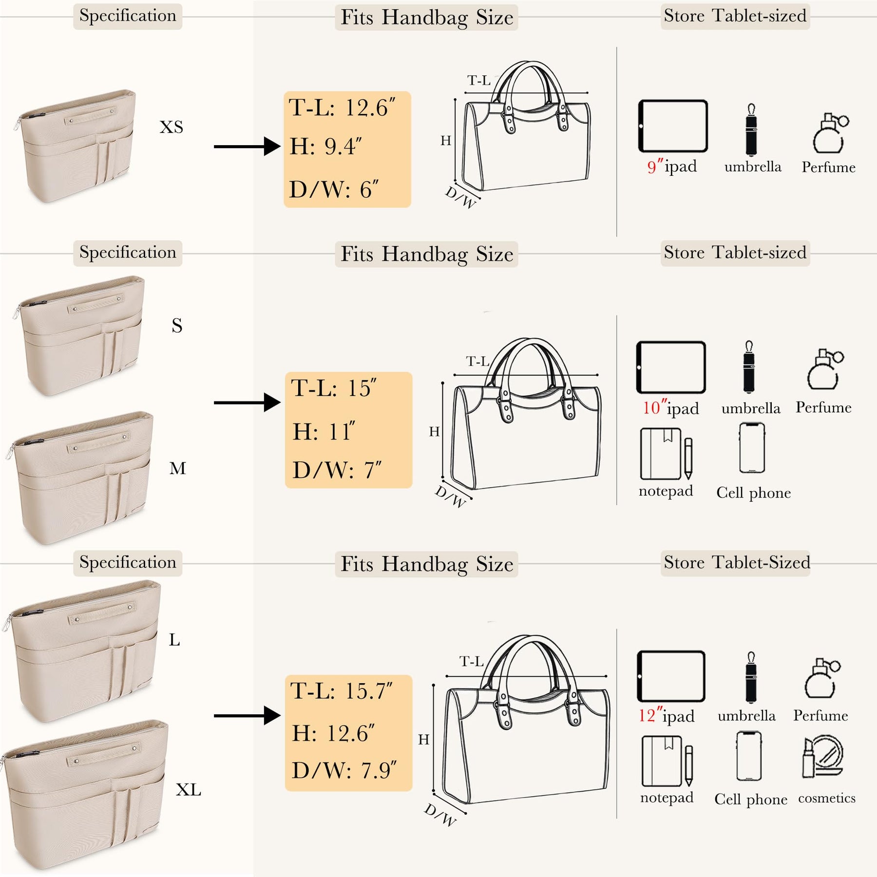 - Easy to Change BagMaintain the shape of the handbag, change your purse in seconds without having to rearrange anything, ideal for daily use and travel. 5 sizes to fully meet your needs, fit for your tote bag, handbag, purse, cosmetic bag, etc.