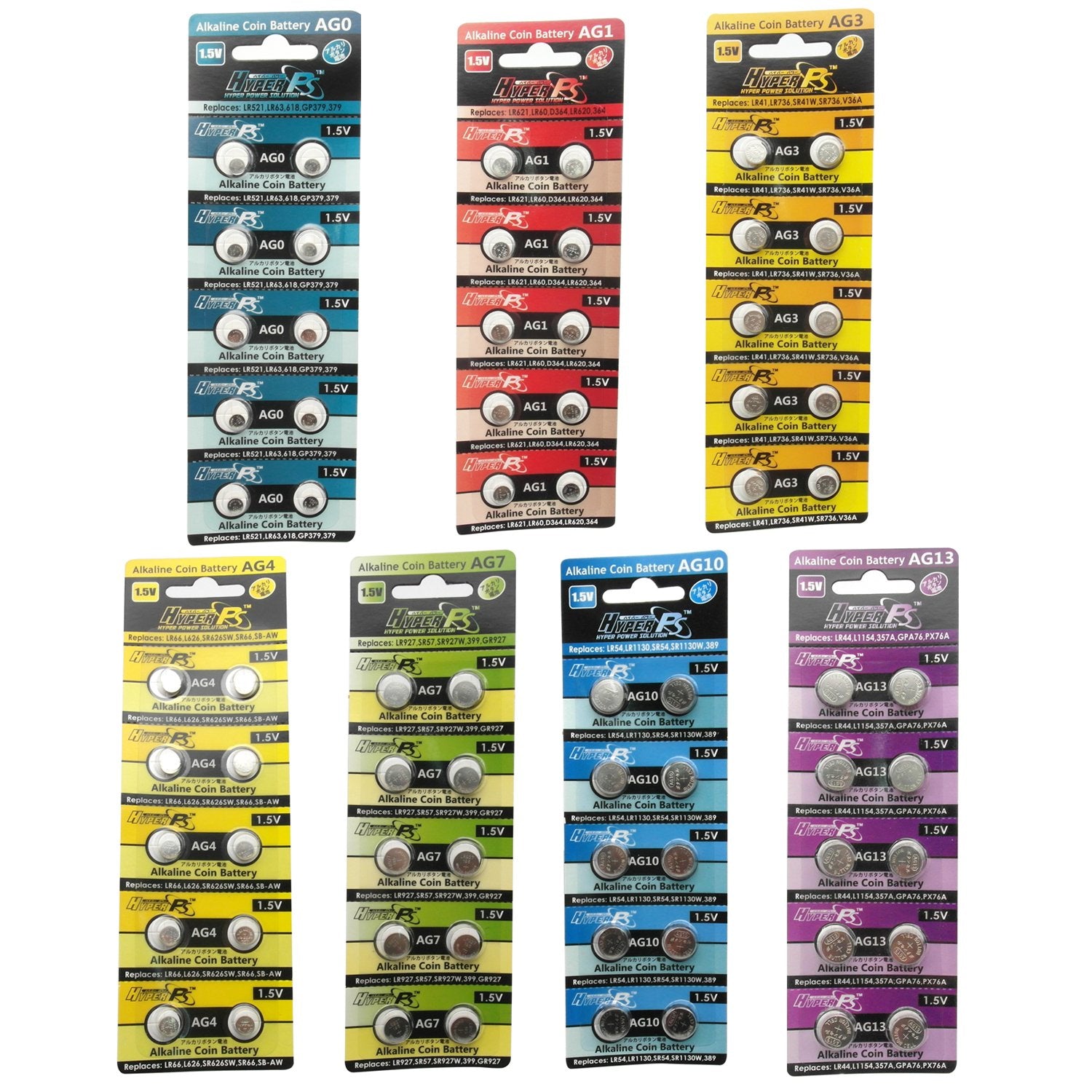 - Original Disposable Batteries – HyperPS (Total 70 pcs) AG0 AG1 AG3 AG4 AG7 AG10 AG13 Alkaline Assorted AG 1.5V Button Cell Battery Single Use Watch Toys Remotes Cameras by HYPERPS