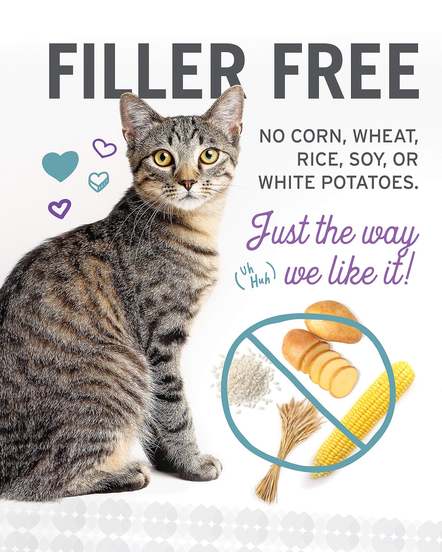 - Grain-Free - Absolutely no corn, wheat, rice, soy, or oats in sight. We don’t pack your pet’s food with grains just to help us save a buck or two.