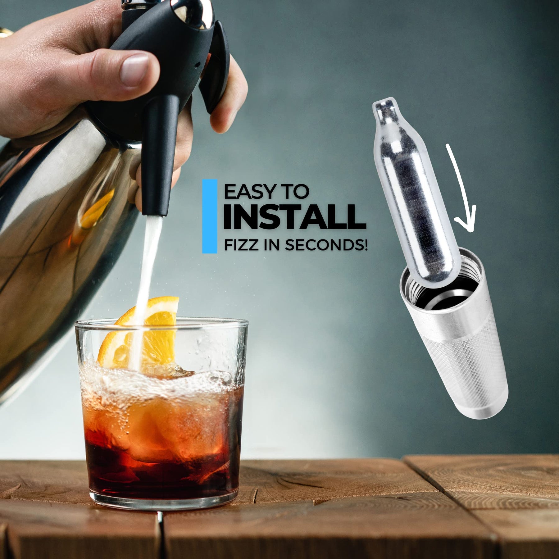 - Make Your Own Soda - Make your own carbonated water at home easily with a seltzer water maker and these 8g C02 cartridges! Ideal for the perfect cocktail, wine spritzer, or refreshing fruit-infused sparkling water. Widely recommended by bartenders.