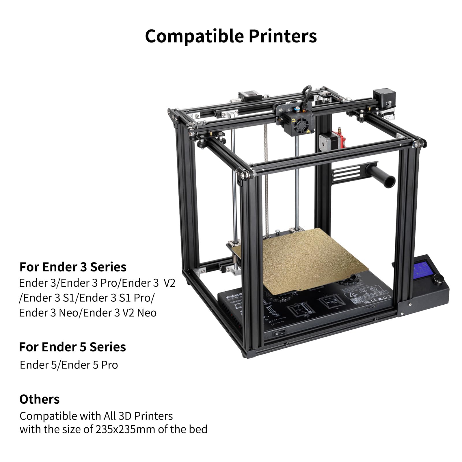 - Compatible 3D PrintersThe size of IdeaFormer-3D PEI build plate is 235x235mm. It's suitable for Ender 3, Ender 3X, Ender 3 Pro, Ender 3 Neo, Ender 5, Ender 5 Pro, Ender 3 V2, Ender 3 V2 Neo, CR-20, CR-20 Pro, for Elegoo Neptune 2, Neptune 3, Neptune 3 Pro, Neptune 4.
