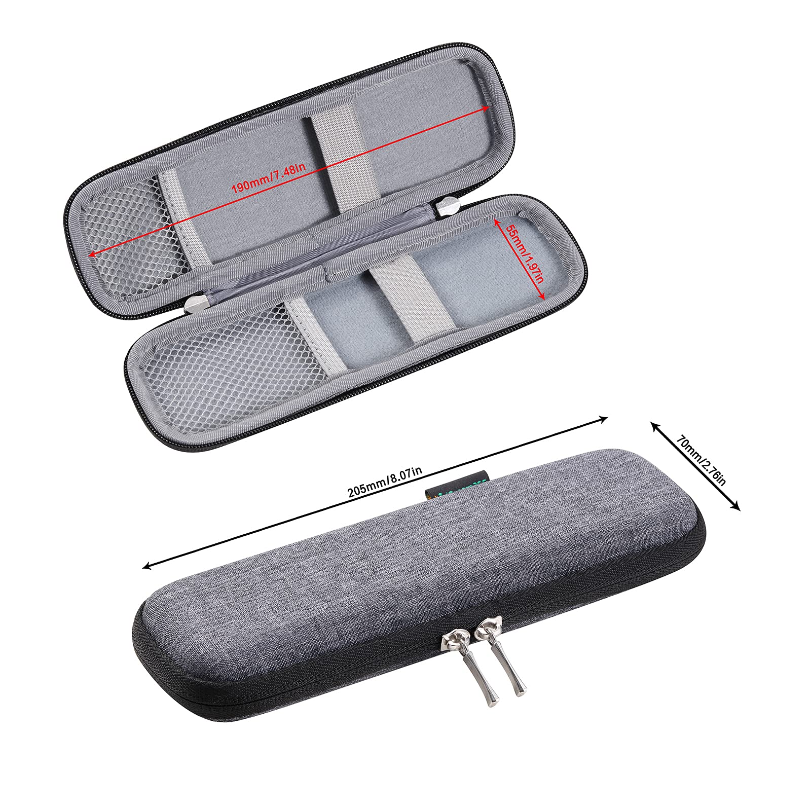 - External dimension: 8.07(L) x 2.48(W) x 1.18(H) inches,internal dimensions: 7.56(L) x 1.97(W) x 0.8(H) inches
