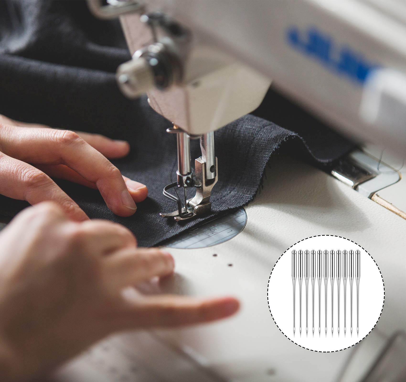 - Multiple Sewing needles machine - Universal needle type 65/9(muslin and other fabrics)75/11(medium to thin fabrics, such as shirts, etc)90/14 (ordinary fabrics)100/16(thicker fabrics, jeans, etc.), 110/18 (thicker fabrics), you can change different models according to different fabrics.